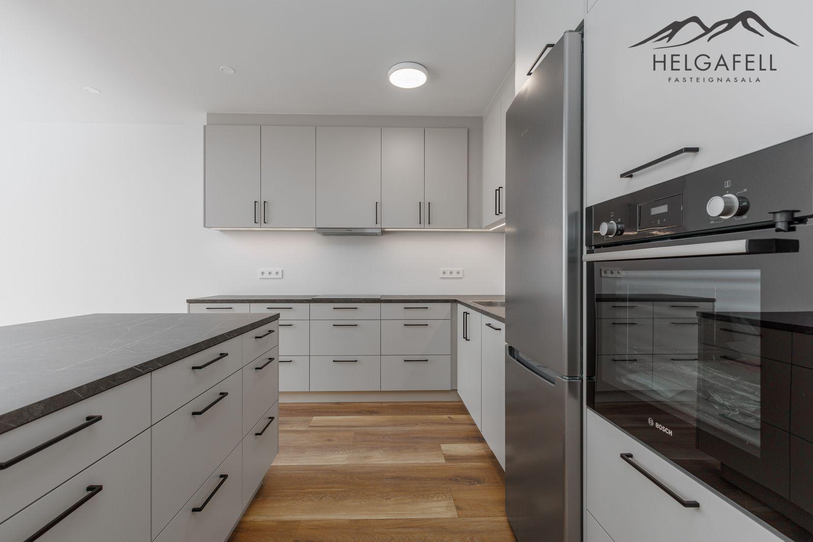 Íbúðin er með gólfhita og er afhent fullbúin með gólfefnum, harðparket á gólfi og flísar í blautrýmum. Einangrun undir gólfhitalagnirnar og anhýdrít ílögn yfir gólfhitalagnirnar.