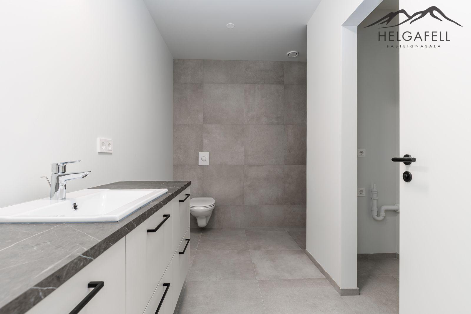 16fm. svalir.Baðherbergi: Rúmgott og flísalagt í hólf og gólf (flísar frá Agli Árnasyni), upphengt salerni, "Walk-in" sturta. Inn af baðherbergi er flísalagt þvottahús.