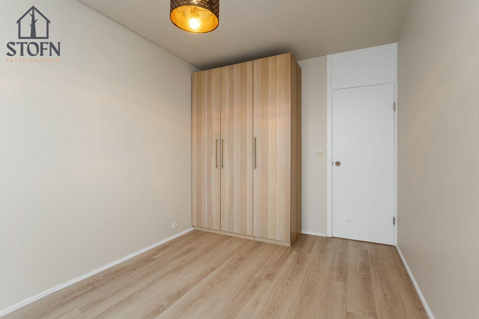 Svefnherbergi: Með parketi á gólfum og rúmgóðum nýjum fataskáp.