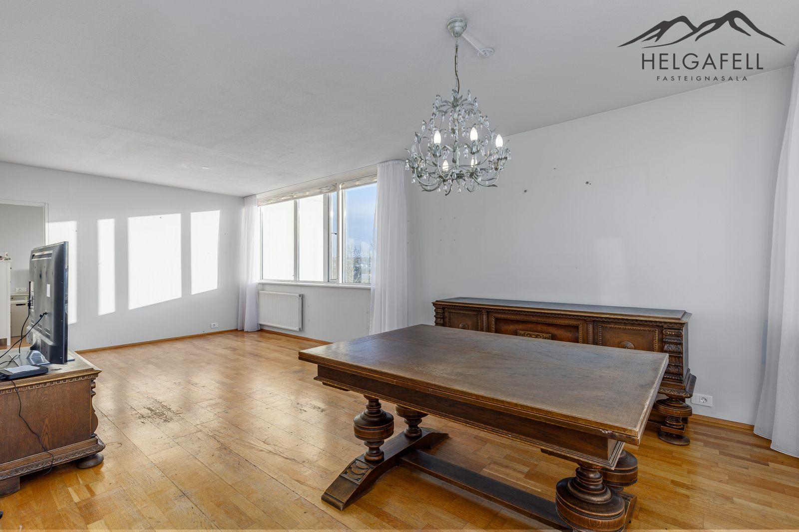 Parketlögð björt stofa með gluggum til suðurs og vesturs. Gengið er út á rúmgóðar vestursvalir úr stofu/borðstofu. Mjög fallegt útsýni.