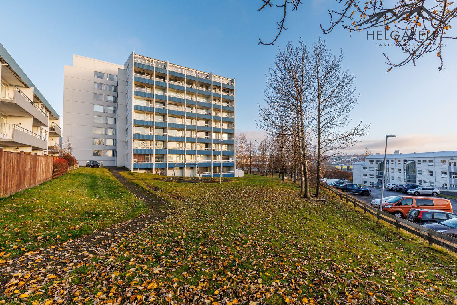 Íbúðin skiptist í þrjú svefnherbergi, baðherbergi með glugga, eldhús og rúmgóða stofu/borðstofu. Tvennar svalir. Til suðurs úr hjónaherbergi og vesturs úr stofu. Sérgeymsla og hjóla-, vagnageymsla er í sameign á jarðhæð.