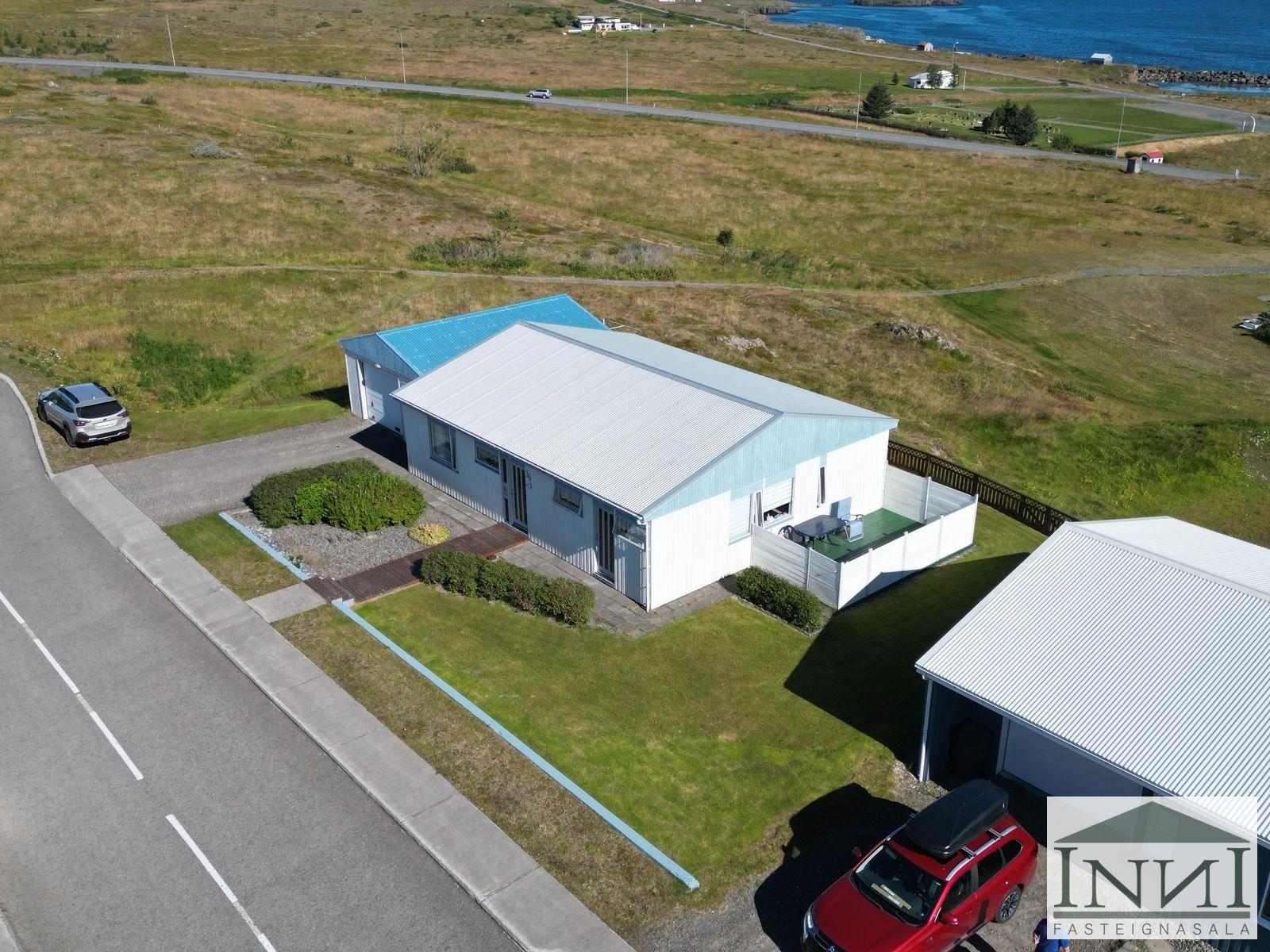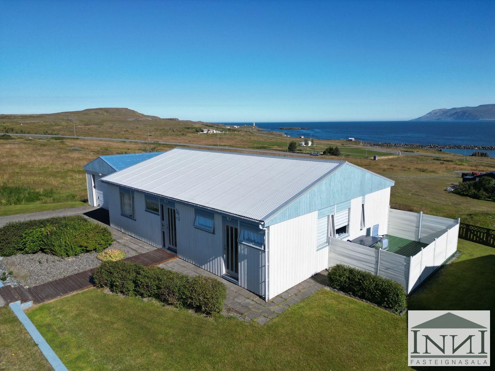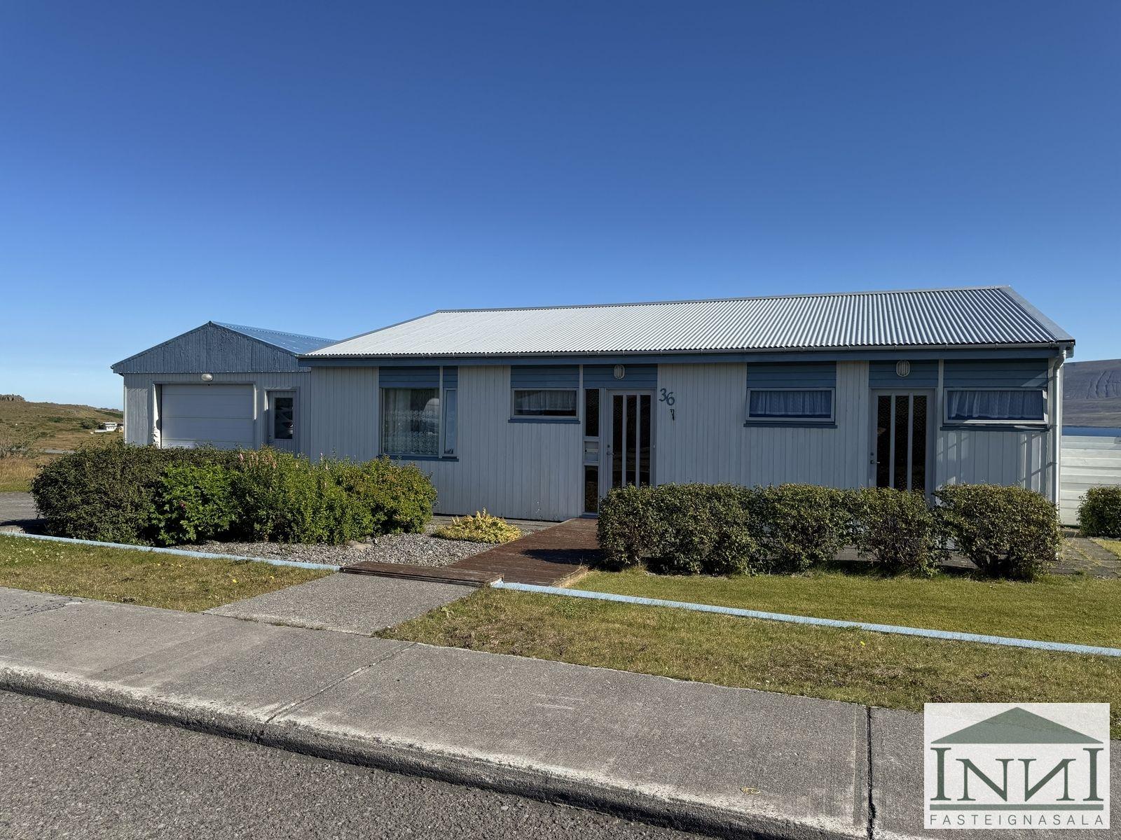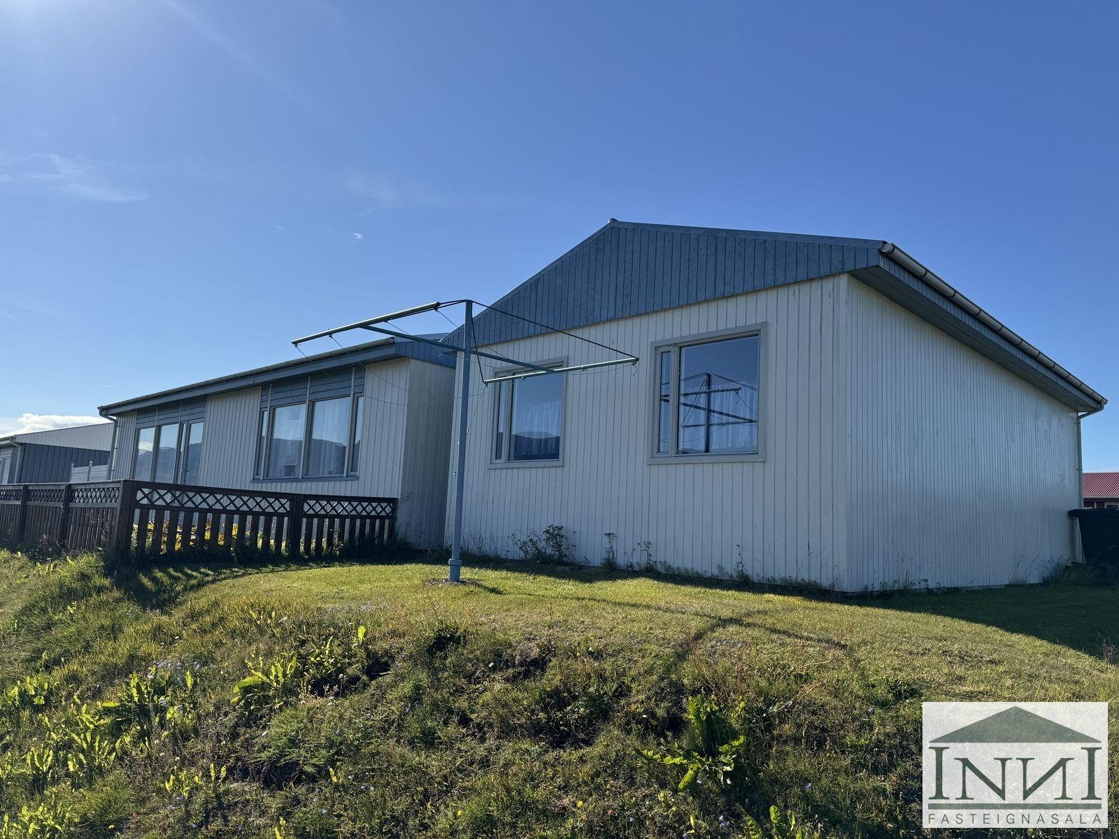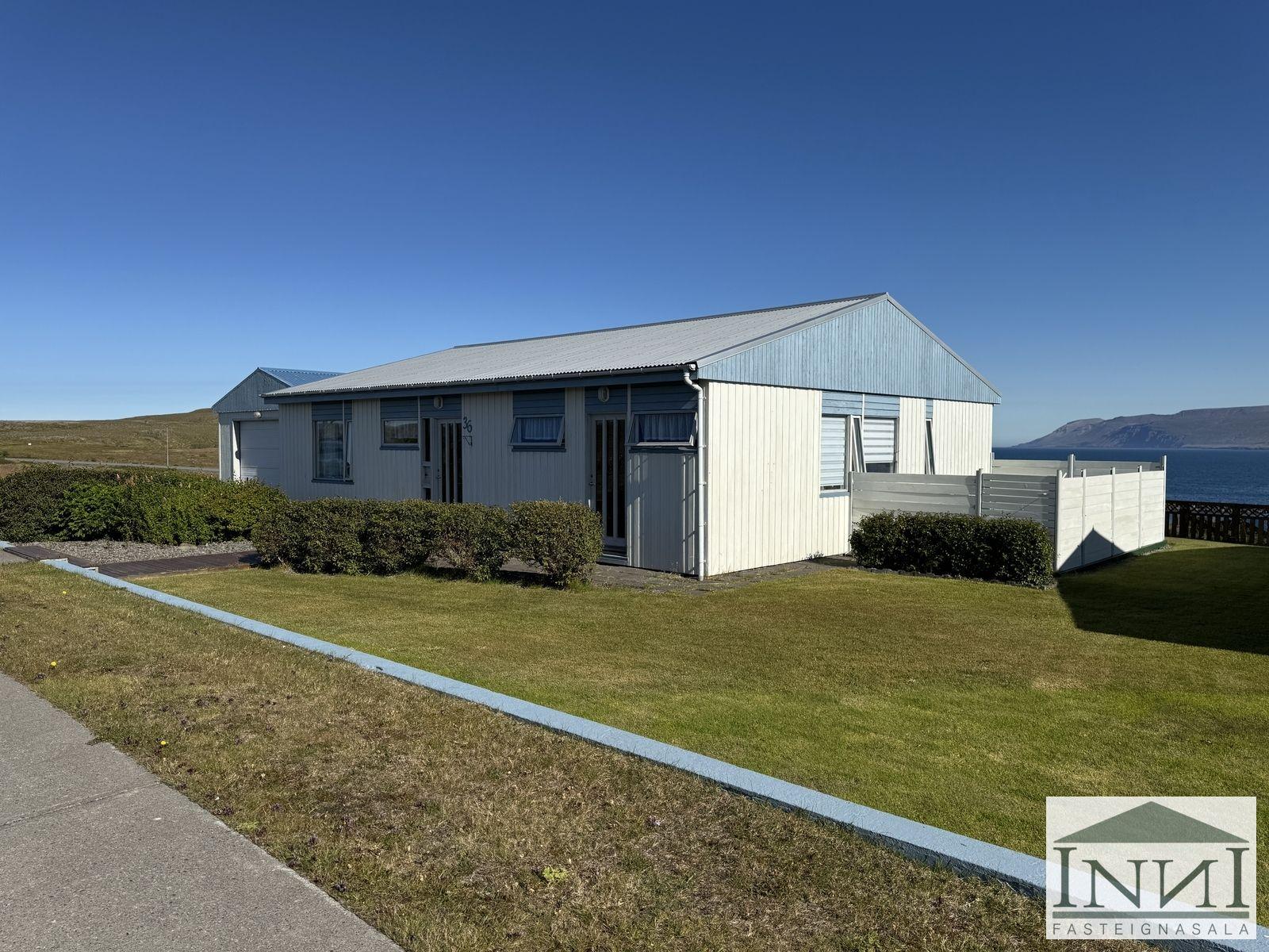 Einbýlishús með þremur svefnherbergjum og bílskúr á Vopnafirði. Gengið er inn í rúmgóða forstofu með flísum á gólfi og þaðan er komið inn á hol. Á holi er fataskápur sem nýtist sem forstofuskápur. Inn af holi er sjónvarpshol og úr því er gengt í flest rými í húsinu. Til hægri er eldhús, beint áfram er stofa og til vinstri er gangur þaðan sem eru þrjú svefnherbergi og baðherbergi. Tvö svefnherbergjanna eru svipað stór með þreföldum fataskápum og svo er hjónaherbergi rúmgott með stórum fataskáp með rennihurðum. Parket er á gólfum. Baðherbergi er með flísum á gólfi og plötum á veggjum, sturtuklefa, snyrtiborði með stórum spegli og lýsingu, salerni, vaski í innréttingu og efri skáp. Stofa og borðstofa eru í björtu rými með stórum gluggum til austurs og er gengt þangað bæði frá holi og eldhúsi. Úr stofu er gengt út í snyrtilegan garð með grindverki. Einnig er pallur sunnan við húsið. Eldhúsinnrétting lítur vel út og hafa framhliðar hennar verið endurnýjaðar. Inn af eldhúsi er þvottahús með máluðu gólfi og þaðan er útgengt. Inn af þvottahúsi er gengt í geymslu sem einnig er með máluðu gólfi, þar er hitakútur og opnanlegt upp á háaloft. Bílskúr er með steyptu gólfi, vaski og rafdrifinni hurð, gluggar snúa niður að sjó. Að utan er húsið timburklætt, þak lítur vel út á húsi en aðeins þreyttara á bílskúr. Skipt hefur verið um járnplötur í þaki, skipt hefur verið um einn glugga í stofu og timbur þar sem þörf var á. Eigninni hefur almennt verið vel við haldið, en nú er kominn tími á að mála það að utan. Snyrtileg eign á fallegum stað á Vopnafirði. Frábært útsýni og nálægð við náttúruna.