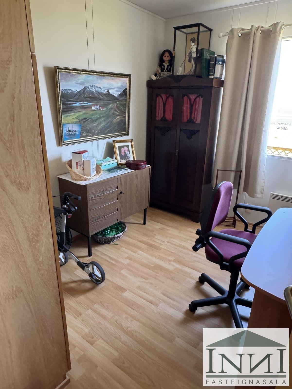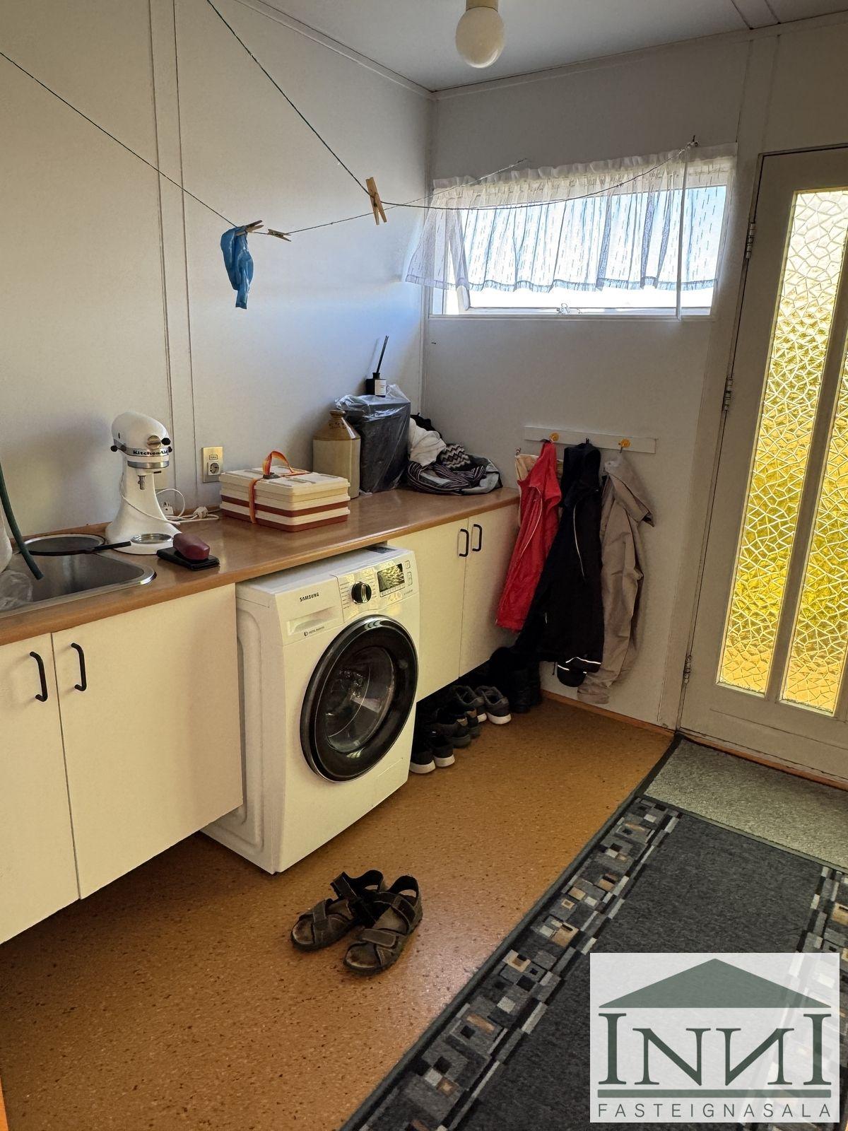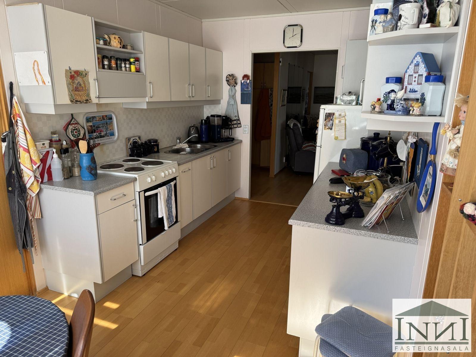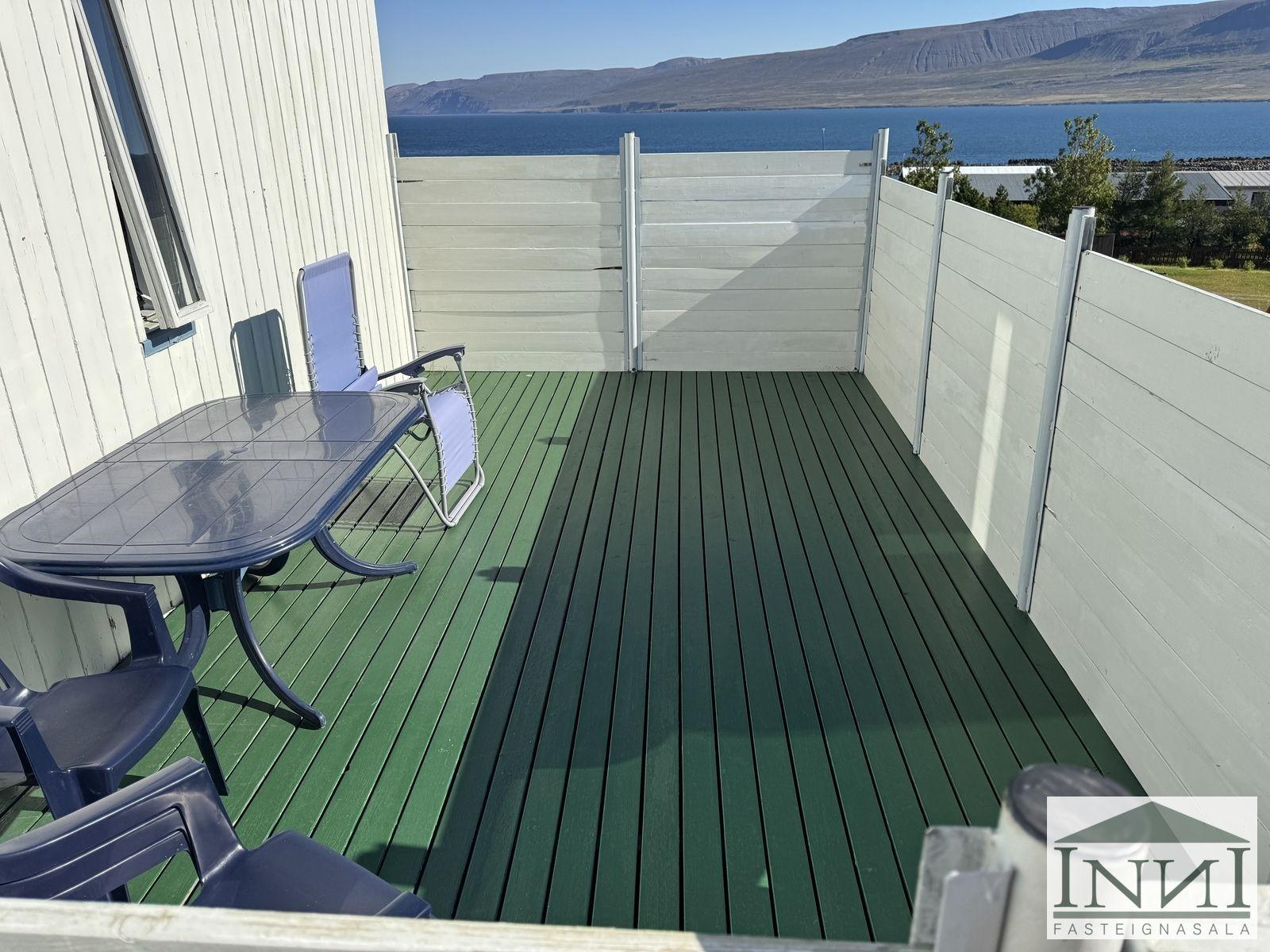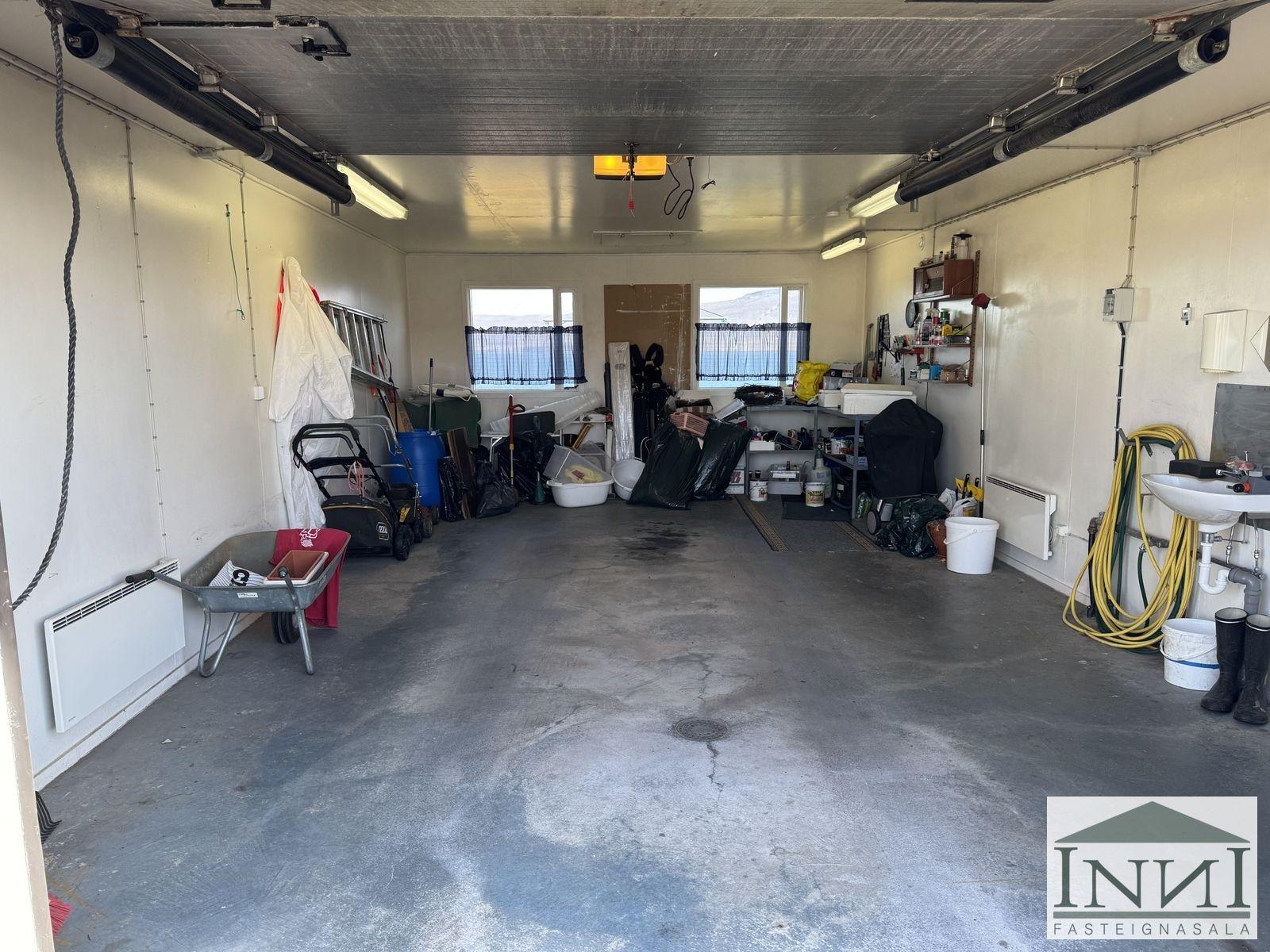 Einbýlishús með þremur svefnherbergjum og bílskúr á Vopnafirði. Gengið er inn í rúmgóða forstofu með flísum á gólfi og þaðan er komið inn á hol. Á holi er fataskápur sem nýtist sem forstofuskápur. Inn af holi er sjónvarpshol og úr því er gengt í flest rými í húsinu. Til hægri er eldhús, beint áfram er stofa og til vinstri er gangur þaðan sem eru þrjú svefnherbergi og baðherbergi. Tvö svefnherbergjanna eru svipað stór með þreföldum fataskápum og svo er hjónaherbergi rúmgott með stórum fataskáp með rennihurðum. Parket er á gólfum. Baðherbergi er með flísum á gólfi og plötum á veggjum, sturtuklefa, snyrtiborði með stórum spegli og lýsingu, salerni, vaski í innréttingu og efri skáp. Stofa og borðstofa eru í björtu rými með stórum gluggum til austurs og er gengt þangað bæði frá holi og eldhúsi. Úr stofu er gengt út í snyrtilegan garð með grindverki. Einnig er pallur sunnan við húsið. Eldhúsinnrétting lítur vel út og hafa framhliðar hennar verið endurnýjaðar. Inn af eldhúsi er þvottahús með máluðu gólfi og þaðan er útgengt. Inn af þvottahúsi er gengt í geymslu sem einnig er með máluðu gólfi, þar er hitakútur og opnanlegt upp á háaloft. Bílskúr er með steyptu gólfi, vaski og rafdrifinni hurð, gluggar snúa niður að sjó. Að utan er húsið timburklætt, þak lítur vel út á húsi en aðeins þreyttara á bílskúr. Skipt hefur verið um járnplötur í þaki, skipt hefur verið um einn glugga í stofu og timbur þar sem þörf var á. Eigninni hefur almennt verið vel við haldið, en nú er kominn tími á að mála það að utan. Snyrtileg eign á fallegum stað á Vopnafirði. Frábært útsýni og nálægð við náttúruna.