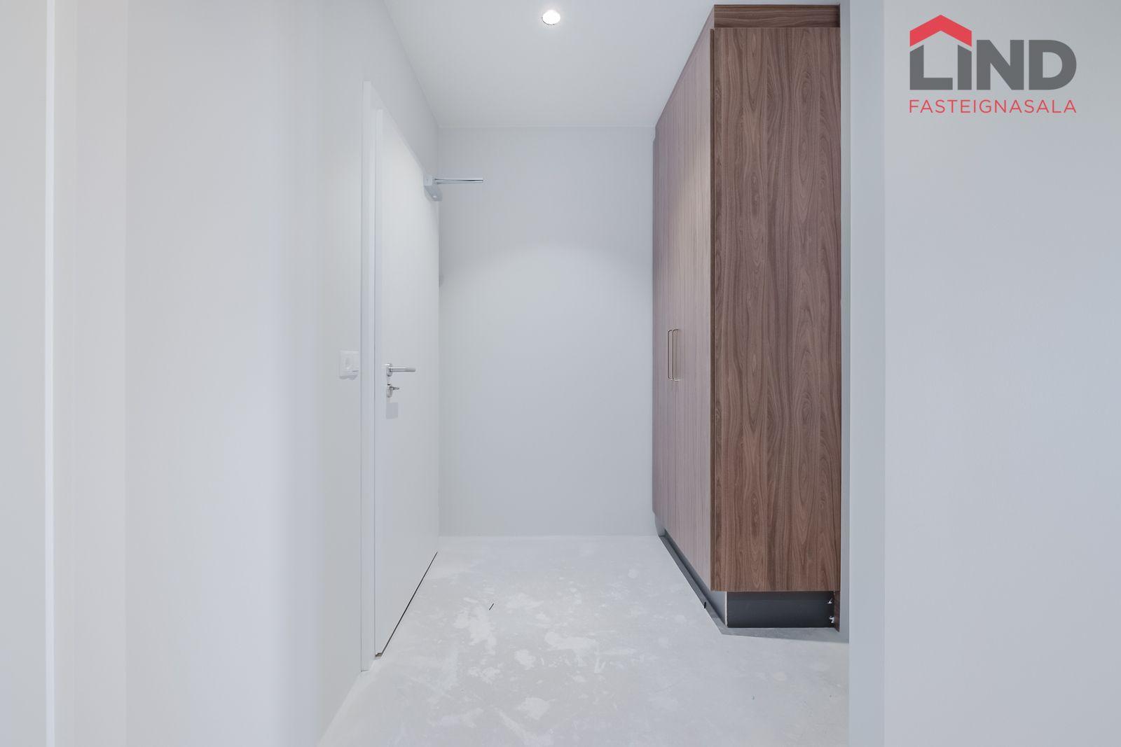 Baðherbergi: Baðinnrétting kemur frá Axis. Hreinlætistæki og handklæðaofn eru frá Byko. Salernið er upphengt og innbyggt. Hitastýrð blöndunartæki verða við sturtu. Gólf eru flísalögð og veggir að hluta upp í loft
