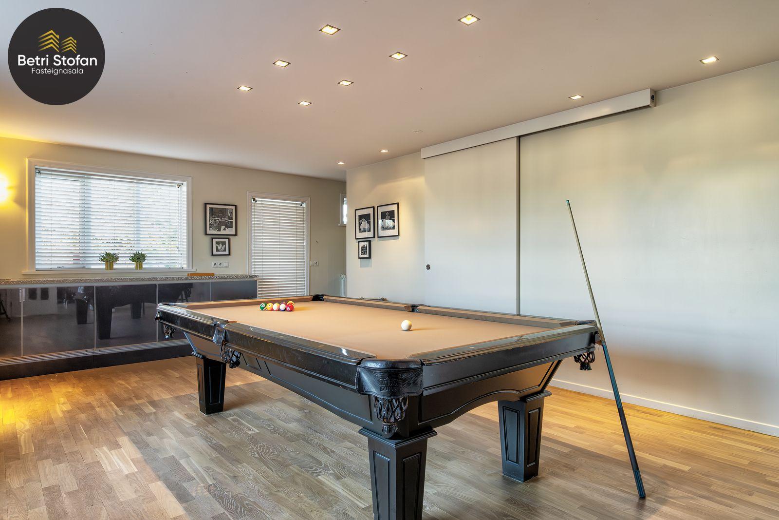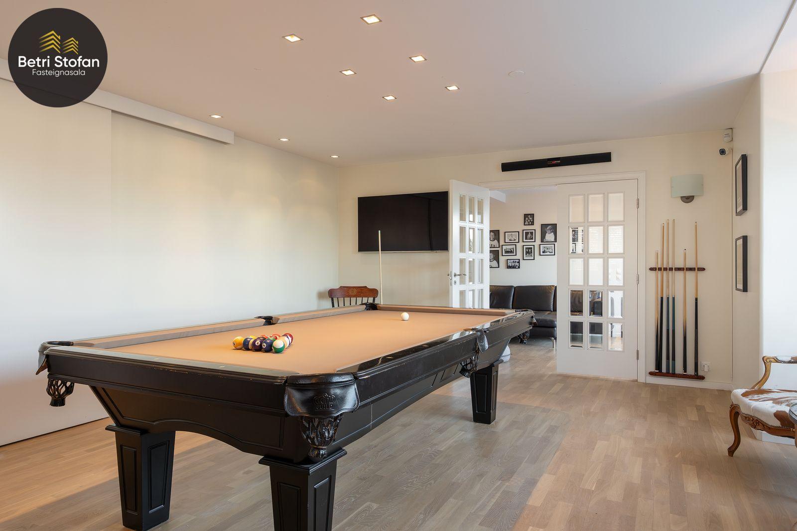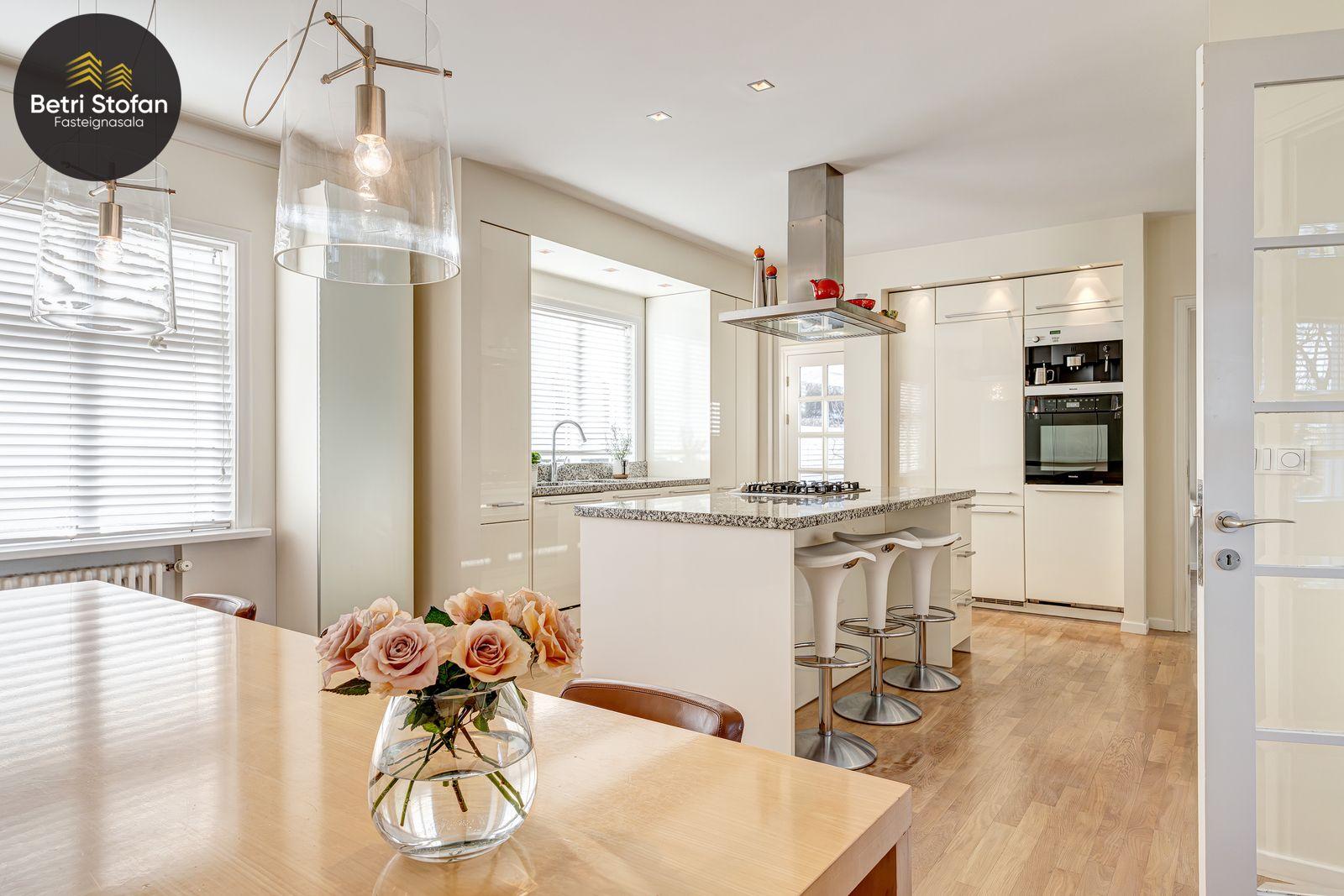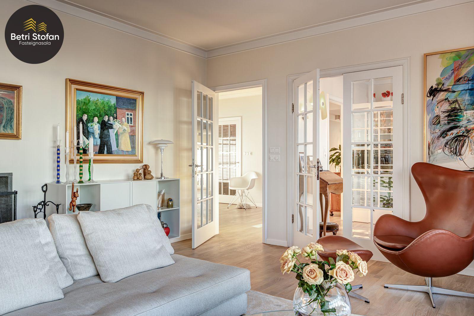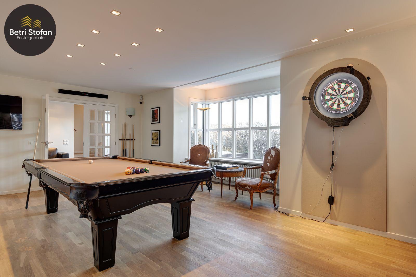 Nánari lýsing: Frá honum er hægt að fara inn um aðalinngang hússins eða beint inn í eldhús. Komið er inn í flísalagða forstofu, en húsið allt er lagt gegnheilu ljósu parketi, utan forstofa, baðherberja og þvottahúss sem eru flísalögð og geymslu og bílskúrs sem eru máluð. Í forstofu er gestasnyrting og fatahengi, en þaðan er farið inn rúmgott hol. Stofan, sjónvarpsherbergið og eldhús sambyggt borðstofu eru björt rými með fallegum gluggum. Arinn er í stofu og úr borðstofunni er útsýni á aðra hönd upp í Öskuhlíð og á hina höndina yfir miðbæ Reykjavíkur, líkt og úr stofunni. Glæsilegt eldhúsinnrétting frá Phoggen Phol er með Miele tækjum. Úr holi er gengið niður tvö þrep inn á svefnherbergisgang, inn í sjónvarpsherbergi/kontór, svo og stofu og eldhús. Á svefnherbergisgangi er stór þakgluggi sem varpar fallegri birtu í rýmið. Frá ganginum er farið inn í tvö rúmgóð svefnherbergi með eldri skápum og einnig inn í stórt hjónaherbergi með nýjum skápum, með einkabaðherbergi innaf, sem er með tvöföldum vaski og baðkari. Frá enda svefnherbergisgangs er gengið út á stóran skjólgóðan sólpall með heitum potti, ásamt heitri og kaldri sturtu. Þaðan er einnig hægt að ganga fram fyrir húsið og aftur fyrir húsið niður í bakgarðinn. Neðri hæð: Úr holi á efri hæð liggur steyptur stigi til neðri hæðar sem er jarðhæð út í garðinn. Komið er inn í rúmgott sjónvarpshol, þar fyrir innan er tómstundaherbergi og innaf því er svefnherbergi og gestasalerni ásamt útgangi til austurs. Úr sjónvarpsholi liggur einnig svefnherbergisgangur með tveimur svefnherbergjum og sameiginlegu baði með tvöföldum vaski og tvöfaldri sturtu. Þá er opið frá sjónvarpsholi inn á gang sem liggur að geymslu og bílskúr, og loks er gengið frá sjónvarpsholi inn í þvottahús, þaðan sem útgengt er í hjólageymslu og út um hurð til suðurs. Bílskúr: Í bílskúr sem er skráður 30,5 fm og er pláss fyrir stóran bíl og 5-6 bílastæði eru aukalega á lóð hússins. Húsið er allt hið glæsilegasta, hefur fengið gott viðhald og verið endurnýjað að nær öllu leyti. Stutt er í skóla, verslanir og miðbærinn í 20 mín göngufæri. Hér er um einstakt tækifæri að ræða, en hús við Háuhlíð hafa löngum gengið í ættir, og koma afar sjaldan á markað.