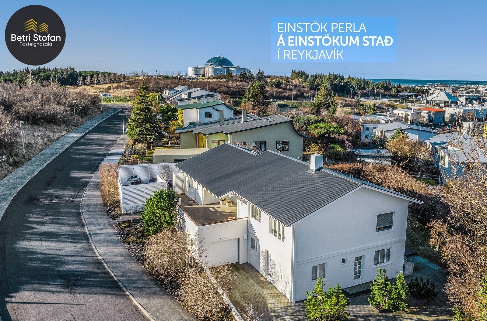 Betri Stofan og Jason Kristinn sími 7751515 jason@betristofan.is kynna: Stórglæsilegt einbýlishús við Háuhlíð 10 í 105 Reykjavík. Eignin er tveggja hæða 368 m2 hús í lokaðri götu sem aðeins telur sex hús, fjærst umferð. Húsið lætur lítið yfir sér frá götunni en gengið er inn á stóran terrasso steyptan pall sem tekur hlýlega á móti fólki mót suðri. Eignin er skráð á tveimur fastanúmerum, F2032117 og F2032116. Aðeins tveir eigendur frá upphafi.