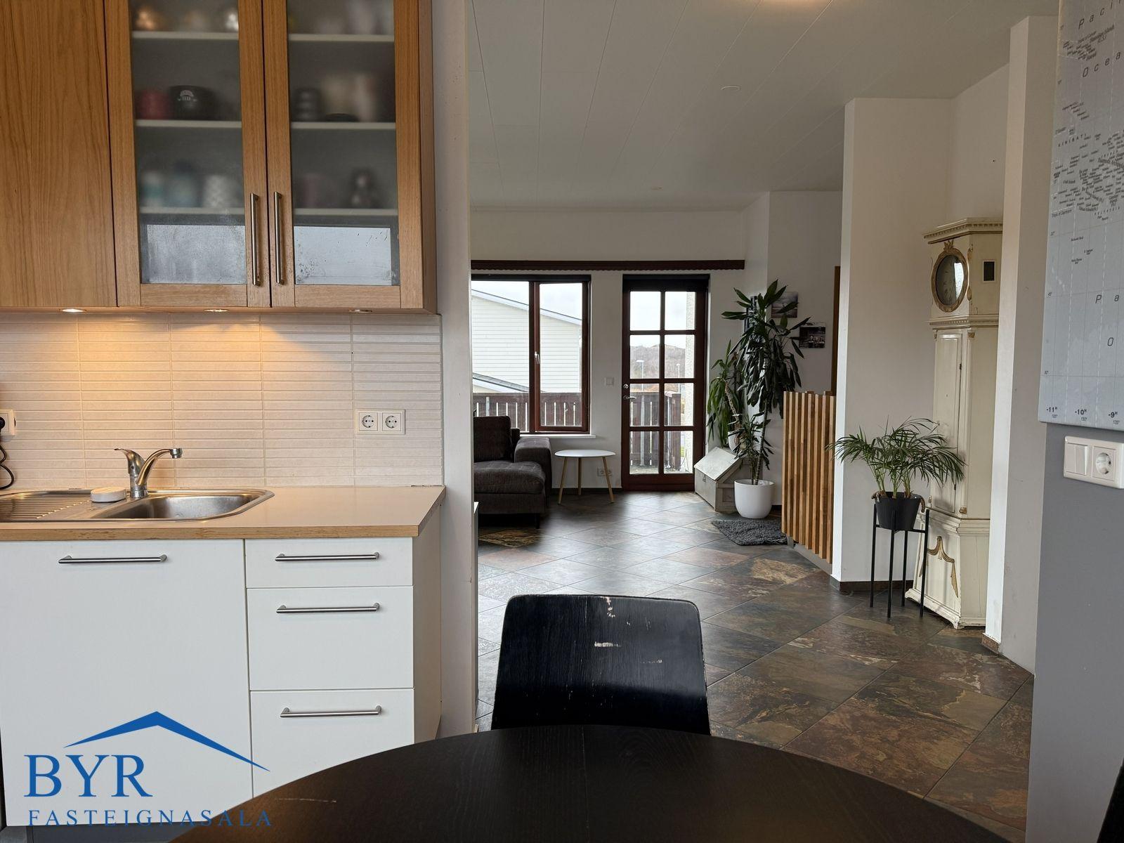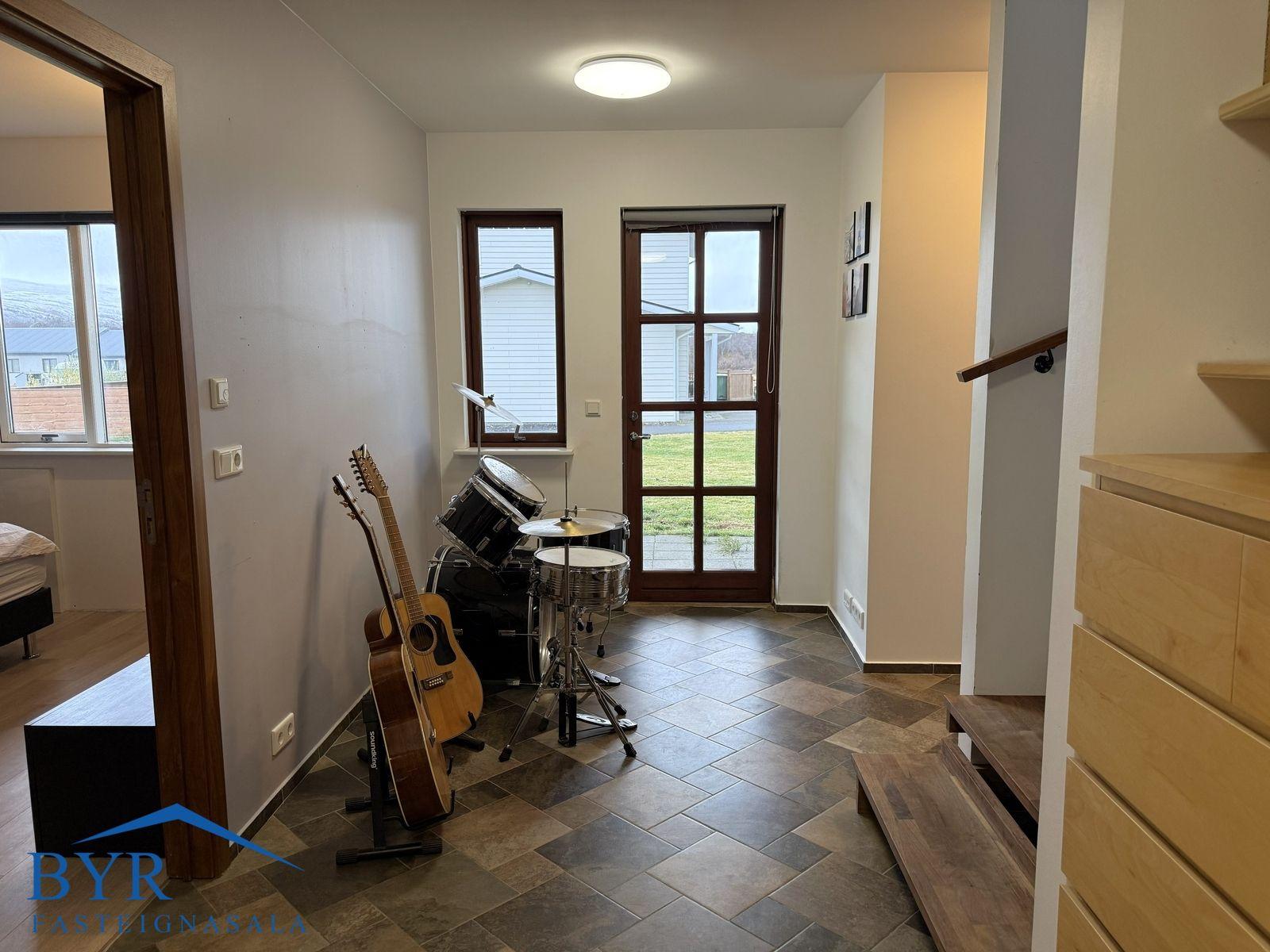 Nánari upplýsingar hjá BYR fasteignasölu | byr@byrfasteignasala.is | 483 5800 |Nánari lýsing; Efri hæð:Anddyri, tvöfaldur fataskápur. Frá anddyri er innangengt í alrými annars vegar og bílskúr hinsvegar.