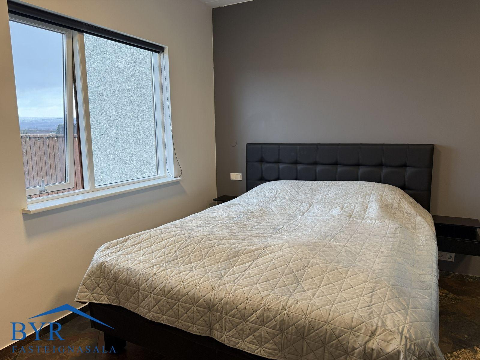 Gólfefni: Flísar á skála, baðherbergi og þvottahúsi. Harðparket á herbergjum.