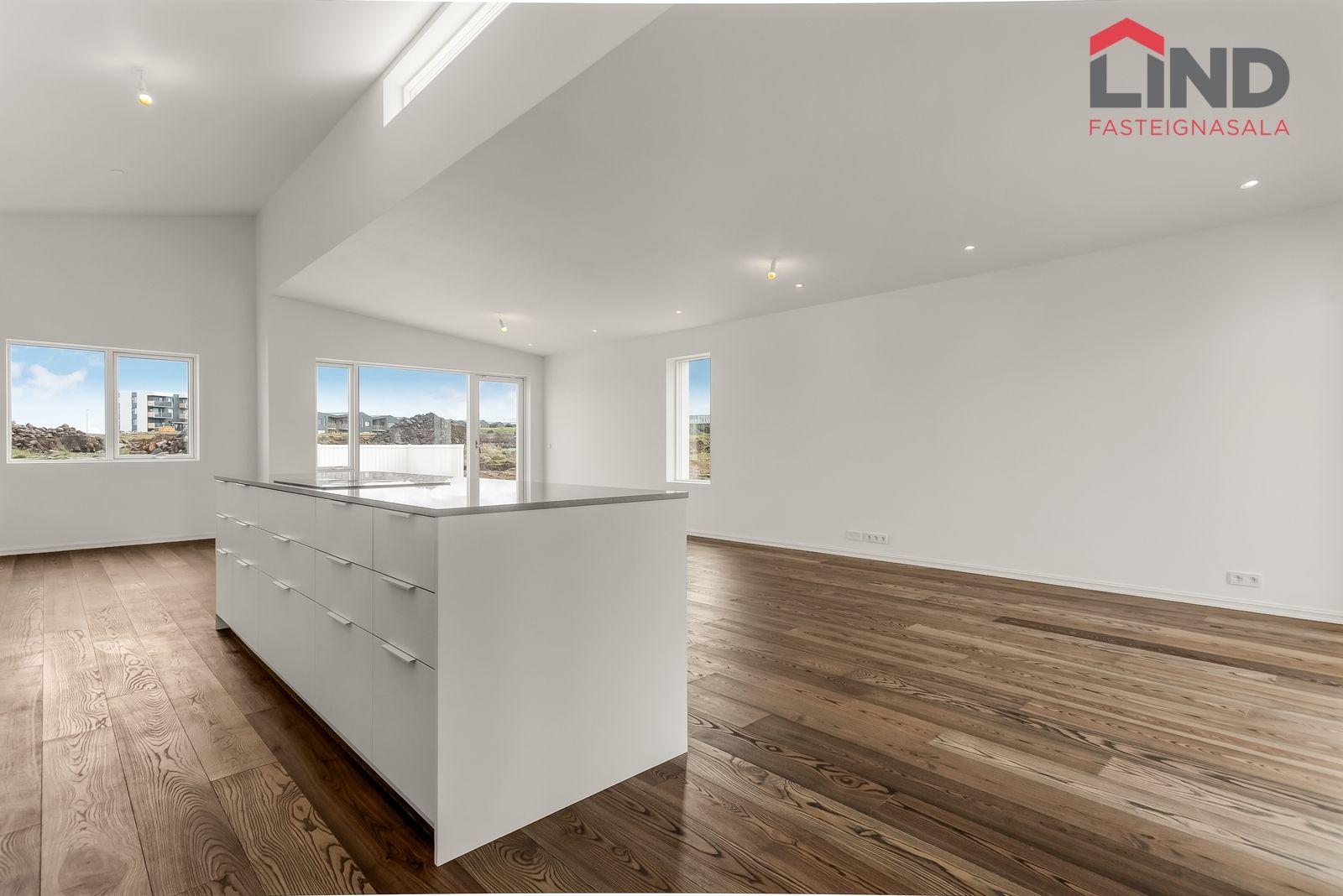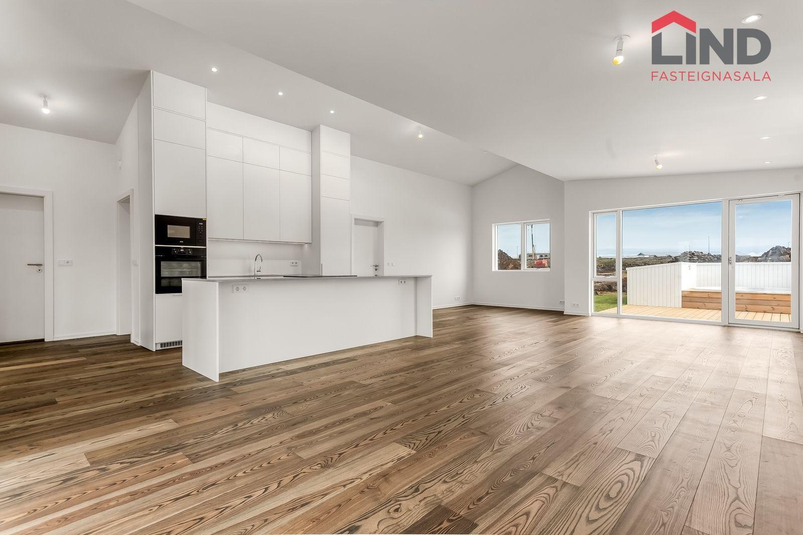 Lind fasteignasala kynnir Sjávaborg 1-3-5 í Vogunum. Verð frá 94.900.000 til 99.600.000. Um er að ræða þrjár íbúðir í hverju húsi sem eru fimm herbergja á fallegum stað stað í Vogunum. Eignirnar skilast fullbúinar við kaupsamning. Eignirnar skiptast í: Anddyri, stofu, borðstofu og eldhús í opnu rými, baðherbergi, þvottahús/geymsla, fjögur svefnherbergi,viðarpallur með heitum potti. Gólfsíðir gluggar í alrými / Danfoss stýrikerfi fyrir gólfhita / Aukin lofthæð / Fullbúið með gólfefnum og tækjum / Rafmagnshleðslustöð á bílastæði / Heitur pottur / Niðurlímt parket ( askur ) á gólfum / Flísar á votrýmum. Allar nánari upplýsingar og ráðgjöf um eignina veitir Ísak V. Jóhannsson sími: 822-5588 isak@fastlind.is Nánari lýsing eignar: Forstofa er með flísum á gólfum og góðum fataskápum. Stofa og borðstofa er í opnu alrými með eldhúsi, rúmgóð stofa með góðri lofthæð sem setur það mikinn svip á stofuna. Innfelld lýsing þar sem á við. Útgengi á verönd með heitum potti sem er tilbúin til notkunar. Eldhús er opið við stofu. Eldhúsinnrétting er hvít melamine með ljósri Quartz borðplötu. Með hverri íbúð fylgir span helluborð með gufugleypi, bakarofn, örbylguofn, innbyggð uppþvottavél og ísskápur með frysti. Svefnherbergi eru þrjú/fjögur talsins þeim fylgja fataskápar í sama lit og efni og er á eldhúsinnréttingu. Parket á gólfum. Baðherbergi er flísalagt í hólf og gólf með 60x60 flísum, upphengt salerni, sturtuklefi og innrétting við vask með ljúflokun á skúffum, tengi fyrir þvottavél og þurrkara. Þvottahús / Geymsla er með flísum á gólfi, innrétting með tengi fyrir þvottavél og þurrkara.