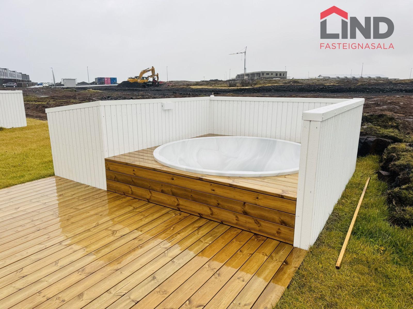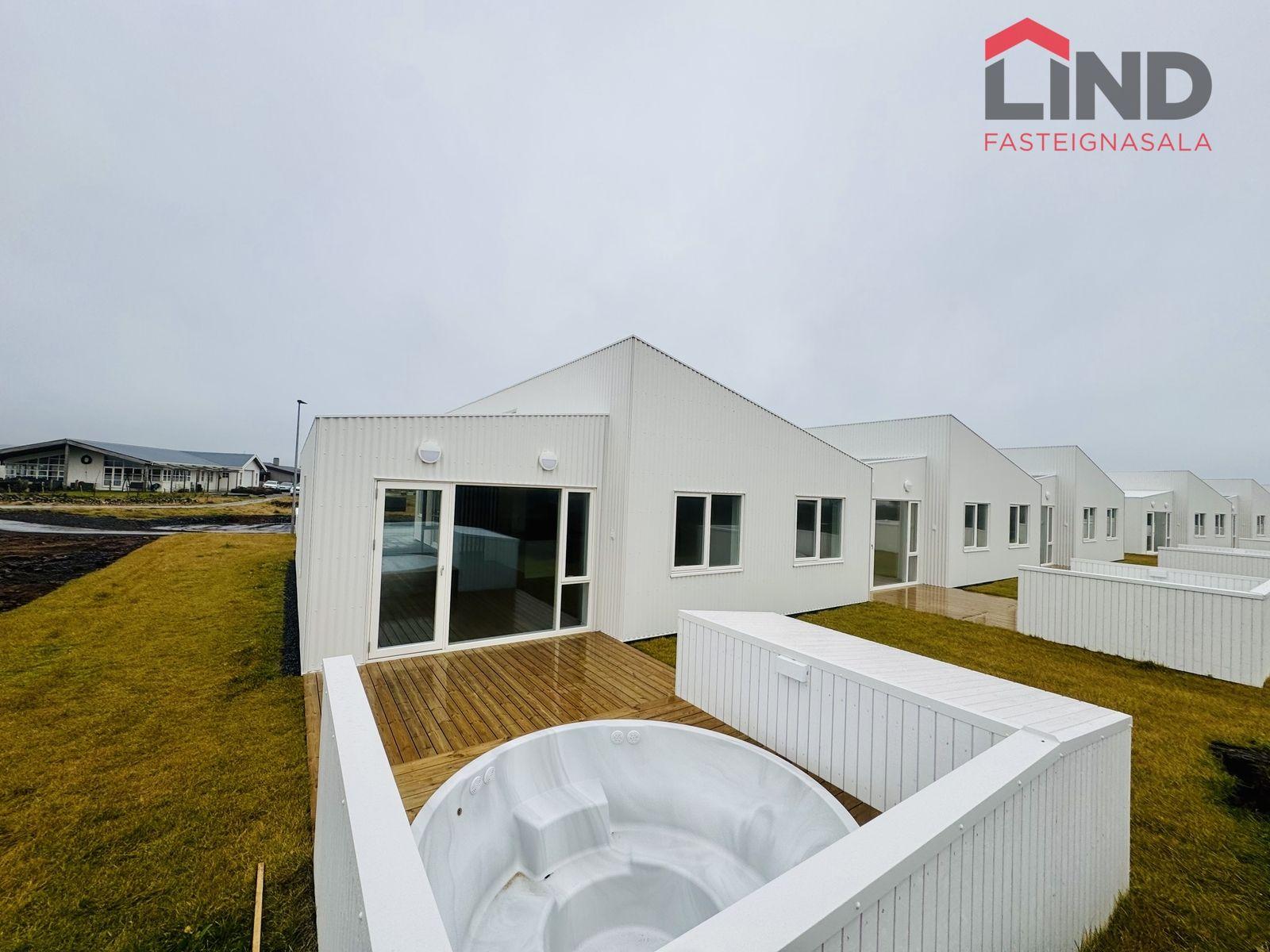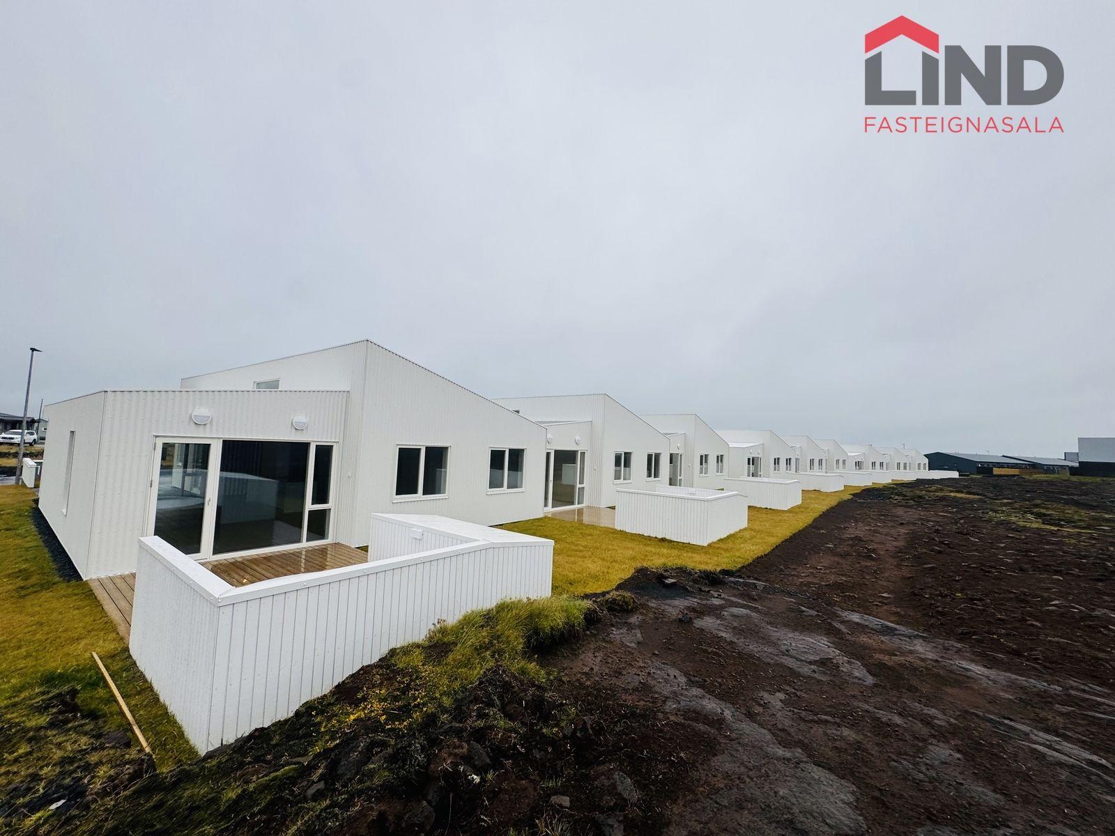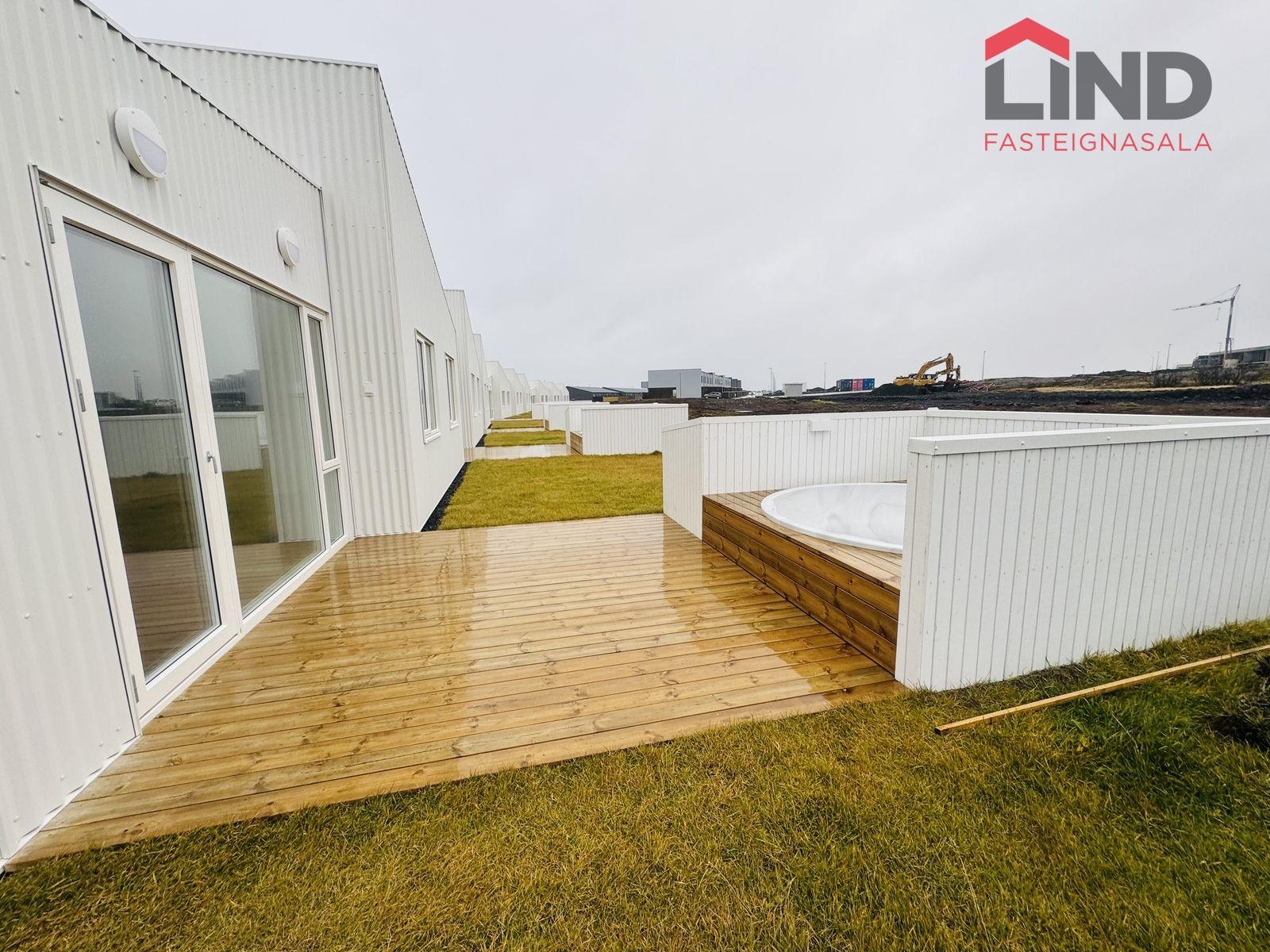 Verandir við bakhlið eru úr timbri. Stéttir og bílastæði við aðkomuhlið íbúða eru hellulögn og snjóbræðsla er í gangstéttum. Eignir eru afhentar án trjágróðurs á lóð. Bílastæði er fyrir framan hvert hús.