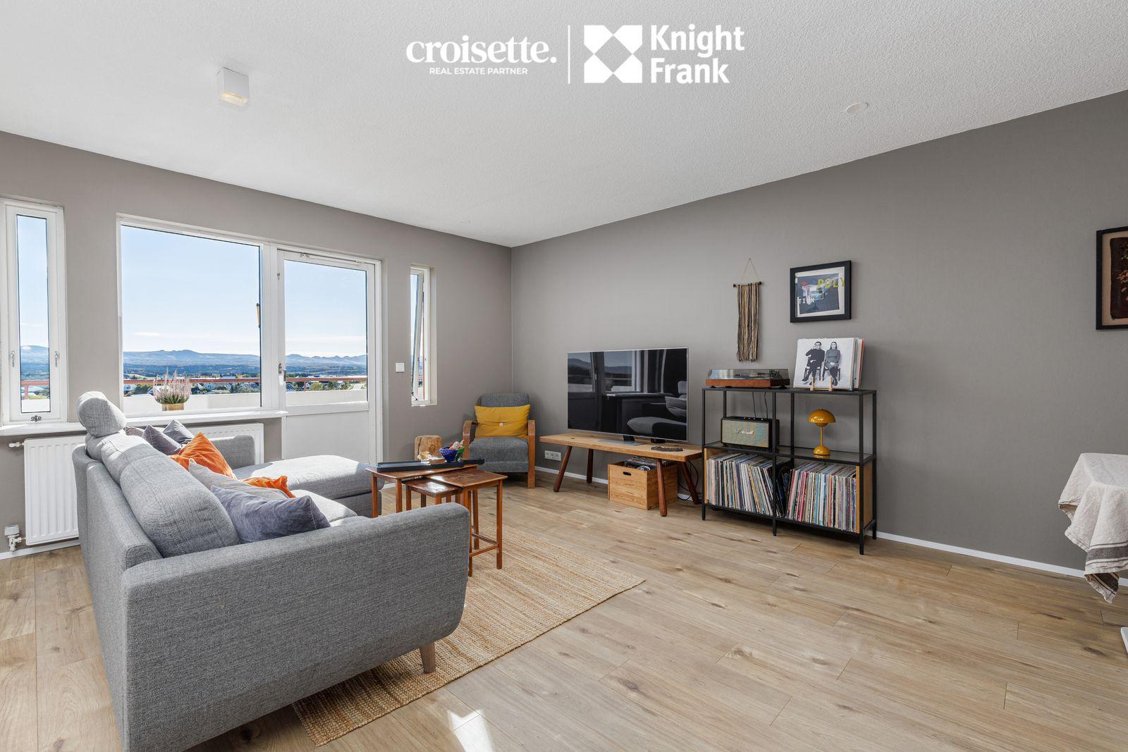 CROISETTE - KNIGHT FRANK kynna í einkasölu bjarta og rúmgóða 132,4 fm þriggja herbergja íbúð á efstu hæð með tvennum svölum og bílskúr við Reykás 41 í Reykjavík. Eignin er á vinsælum stað í Árbænum og er afar fallegt útsýni frá henni yfir Rauðavatn og nágrenni. Íbúðin er skráð 103,7 fm og skiptist í forstofu, eldhús, borðstofu, stofu, tvö svefnherbergi, baðherbergi og þvottahús ásamt 5,5 fm geymslu í sameign. Bílskúr fylgir eigninni og er skráður 23,2 fm. Allar nánari upplýsingar veita Karl Lúðvíksson, löggiltur fasteignasali í s. 663-6700 eða kalli@croisette.is og Elín Auður Traustadóttir löggiltur fasteignasali í s: 858-0978 eða elin@croisette.isSMELLTU HÉR TIL AÐ FÁ SENT SÖLUYFIRLITSMELLTU HÉR TIL AÐ SKOÐA ÍBÚÐINA Í ÞRÍVÍÐU UMHVERFI (3D)Nánari lýsing: