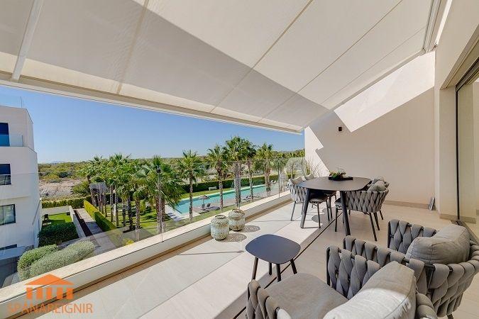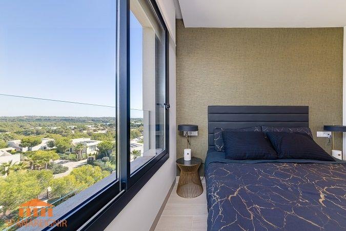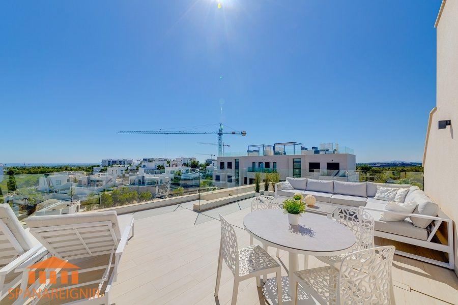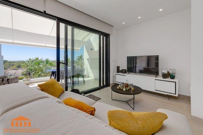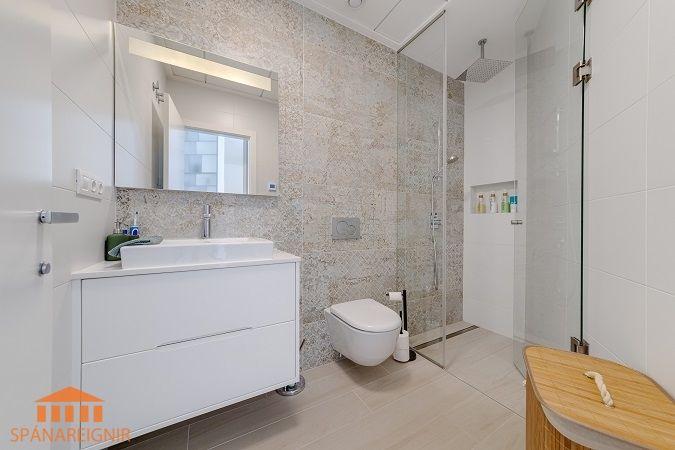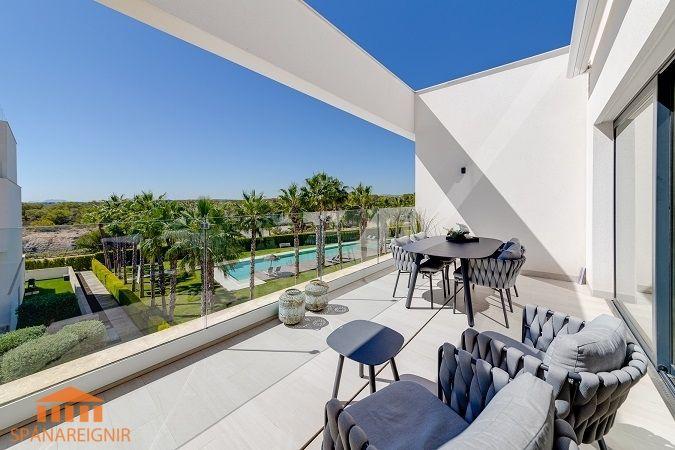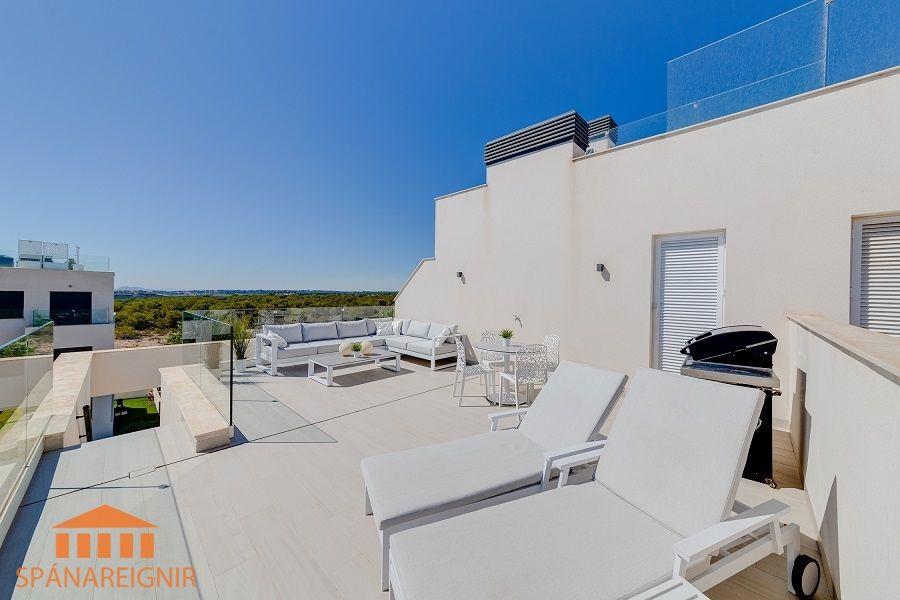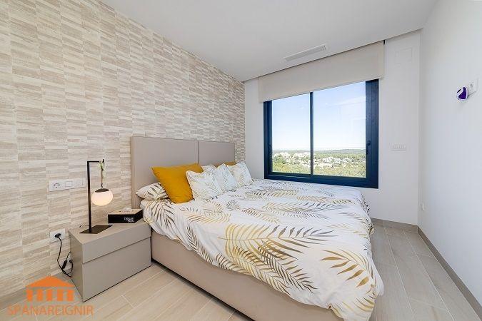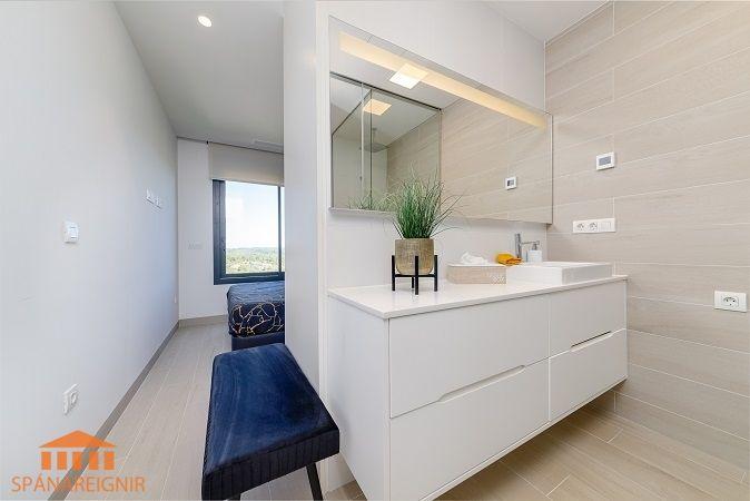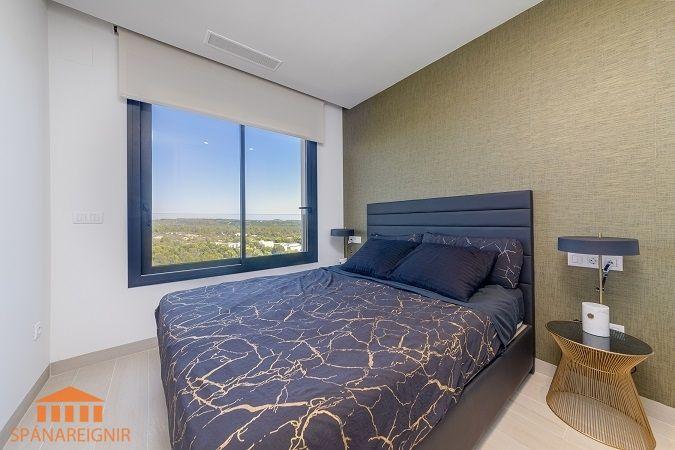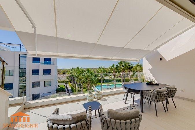Glæsileg og vel hönnuð penthouse íbúð sem staðsett er til suðurs, með þaksvölum og einstöku útsýni. Las Colinas hefur verið valið besta golfsvæði á Spáni undanfarin ár og er talið eitt besta golfvallasvæði í Evrópu. Um 1 klst. akstur suður af Alicante. Rúmgóð íbúð, tvö svefnherbergi, tvö baðherbergi, góð stofa, opið og bjart eldhús. 20 fm svalir frá stofu og 40 fm þaksvalir. Fallegt óhindrað útsýni. Sameiginleg sundlaug, og fallegur garður.