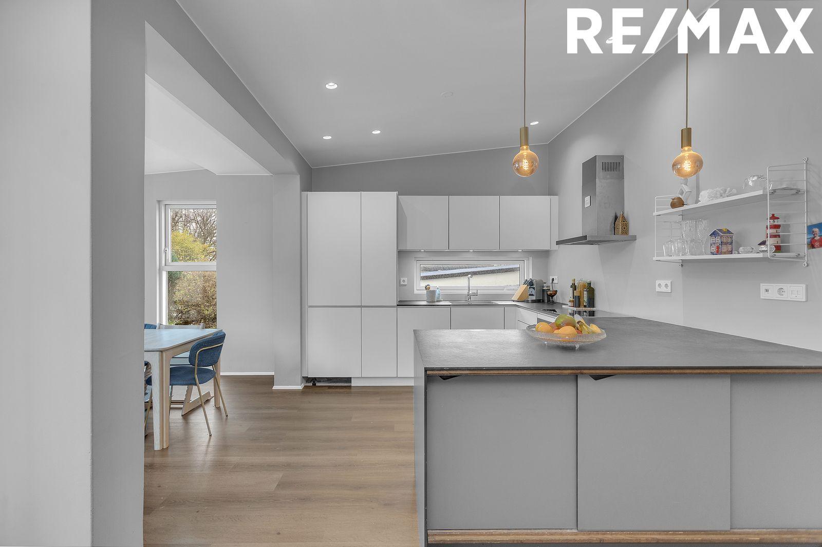 Eldhúsið var endurnýjað 2019. Innréttingin er frá Kvik og tækin Siemens. Innbyggður ísskápur og uppþvottavél.
