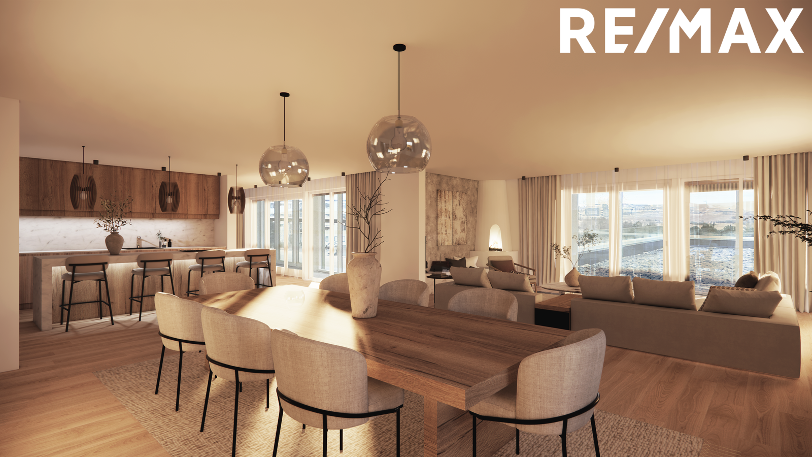 Gólfsíðir gluggar að útisvæðum.