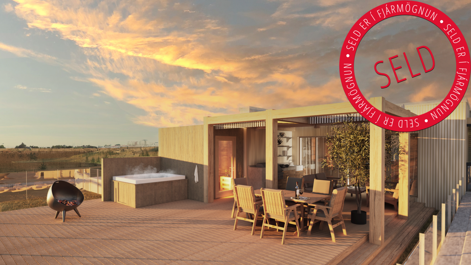 266,5 fm þaksvalir þar sem hægt er að gera stóran pall, útieldhús og hafa heitan pott.