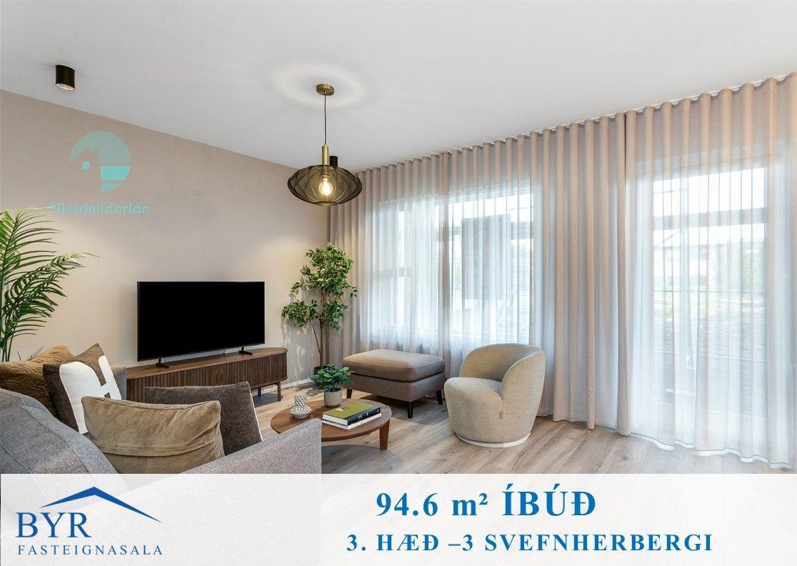 Íbúðin er 94.6 m² að stærð samkvæmt skráningu HMS.