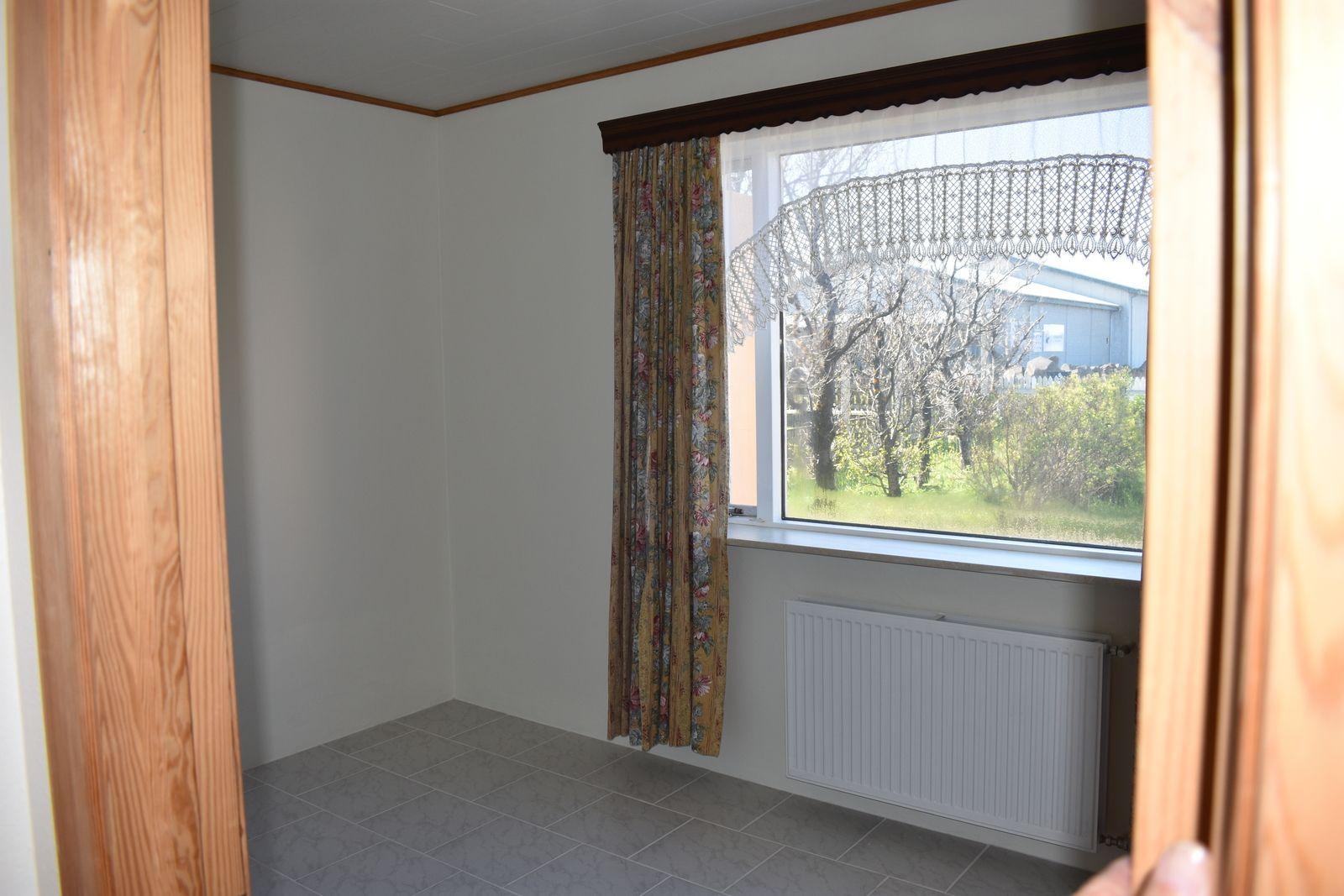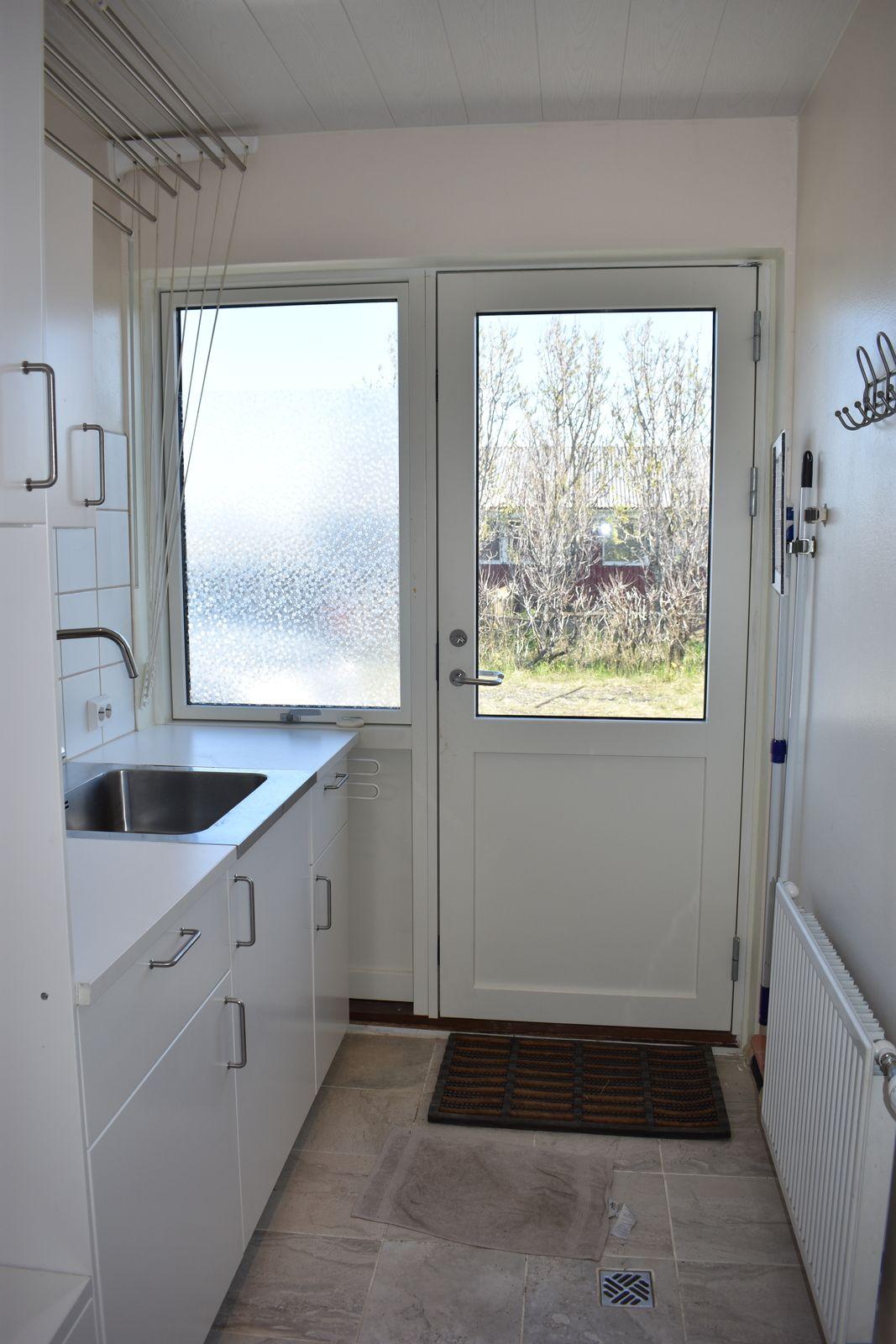 Nánari lýsing: Forstofa: Lítil forstofa þegar komið er inn í húsið með fataskáp. Flísar á gólfi. Svefnherbergi inn af forstofunni. Nýr gluggi í pöntun. Gangur: Flísalagður gangur Stofa: Rúmgóð stofa með aðgengi að hellulagðri verönd. Skipt var um svalahurð og stóra gluggan árið 2012. Nýr gluggi í pöntun í stofu. Verönd: Hellulögð verönd í þokkalegu standi. Eldhús: Viðarlituð innrétting er í eldhúsi með hvítri borðplötu og hvítar flísar á vegg milli skápa og borðs á innréttingu. Inn af eldhúsi er rúmgott búr sem verður dúklagt á næstu dögum. Flísar á gólfi. Baðherbergi: Snyrtilegt baðherbergi með nýlegri innréttingu. Flísar á gólfi og veggjum. Baðkar og sturta. Svefnherbergi: 4 svefnherbergi eru í húsinu en eitt herbergið var stækkað og tekin niður veggur á milli. Hægt að færa aftur í upprunalegt form en hurðargatið er nýtt sem bókahilla í dag. Þvottahús: Innrétting frá 2021, með hækkun fyrir þvottavél og þurrkara, og einnig var skipt um útihurð úr þvottahúsi. Garður: Stór og fínn garður með hvítri timburgirðingu. Bílskúr: Rúmgóður 45m2 bílskúr. Skipt um alla glugga árið 2023.