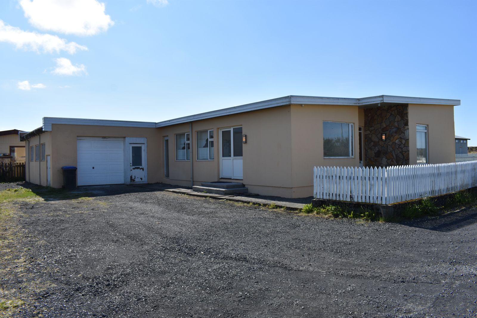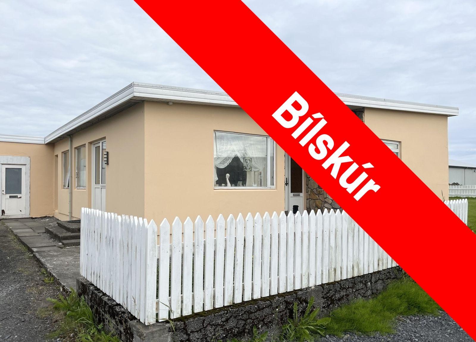 Skipulag eignar: Forstofa, stofa, gangur, eldhús með búri, þvottahús, 4 svefnherbergi, baðherbergi og bílskúr.