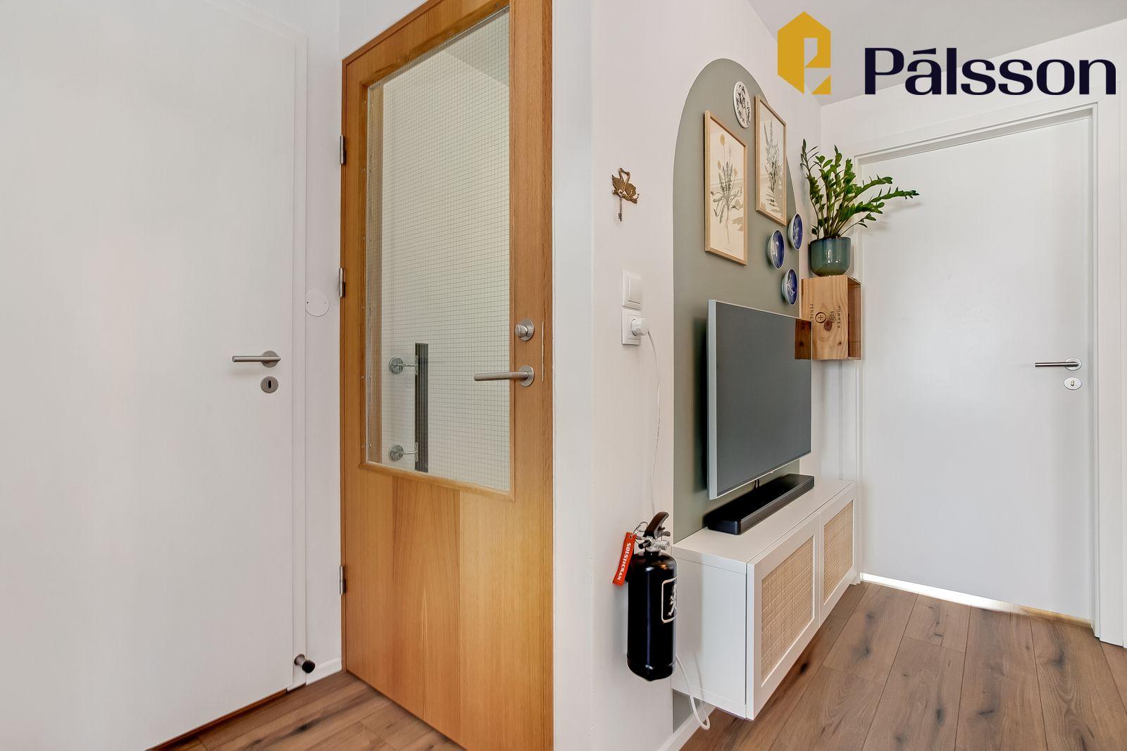 Geymsluloft er yfir íbúðinni, aðgengilegt úr niðurfellanlegum stiga í sjónvarpsstofu.