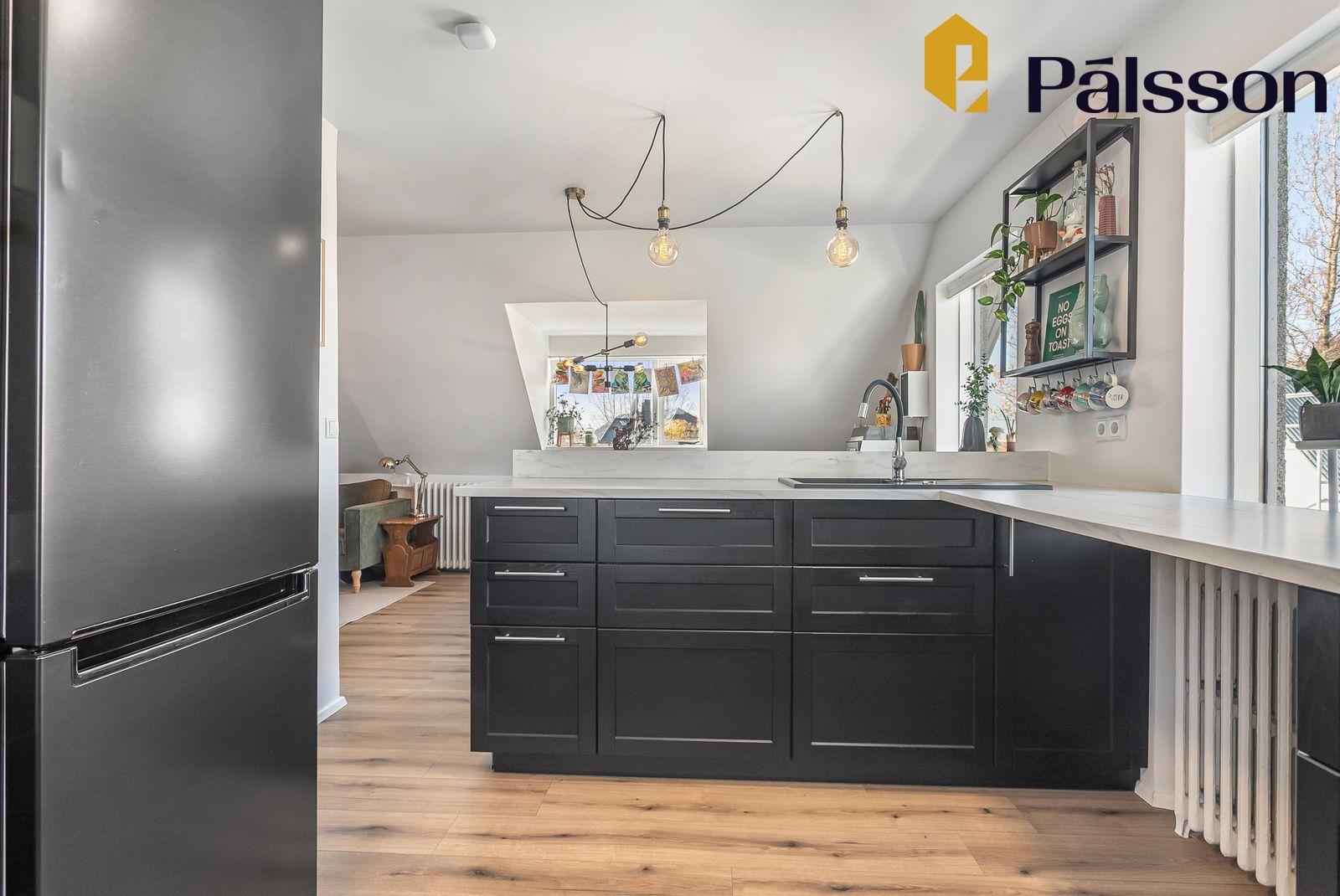 * Endurnýjað eldhús, gólfefni og hurðar