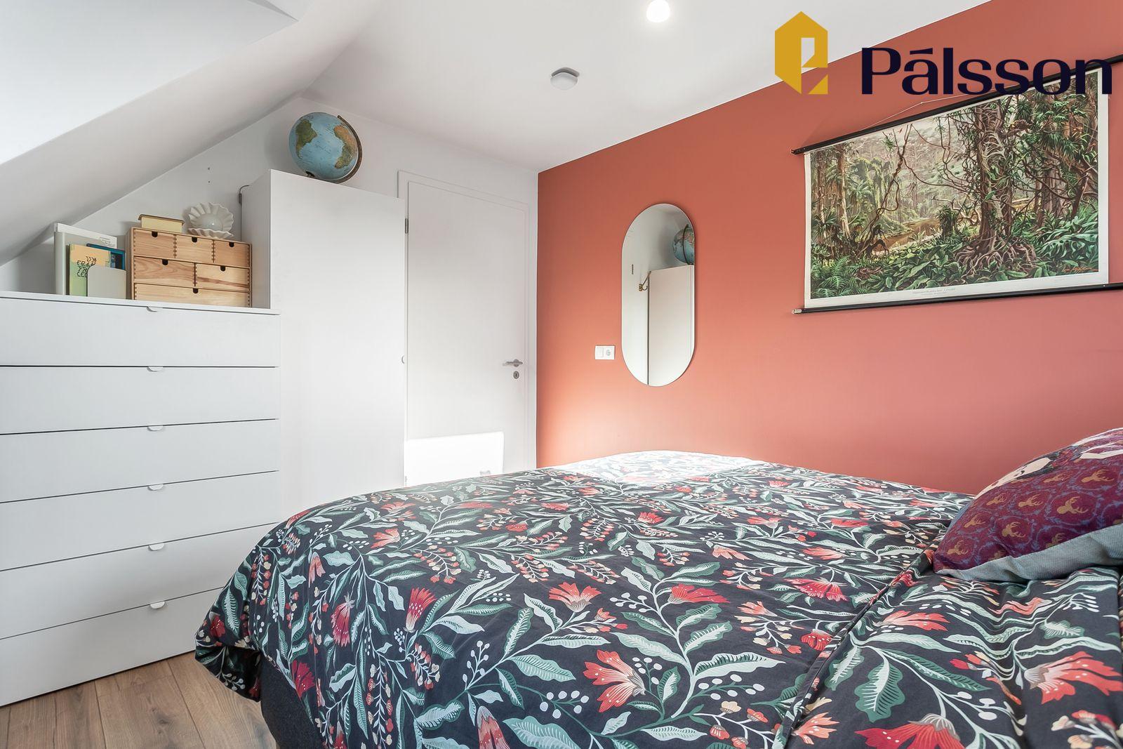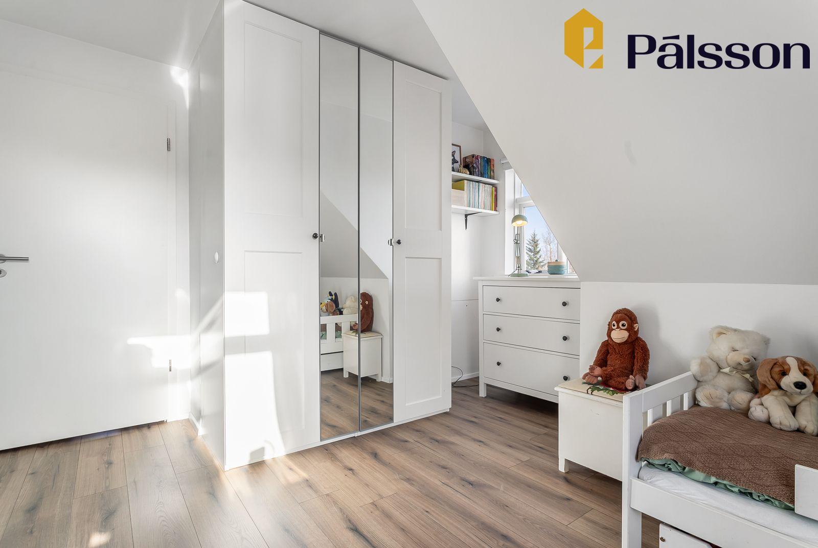 Svefnherbergi 2 er með parket á gólfi og fataskáp.