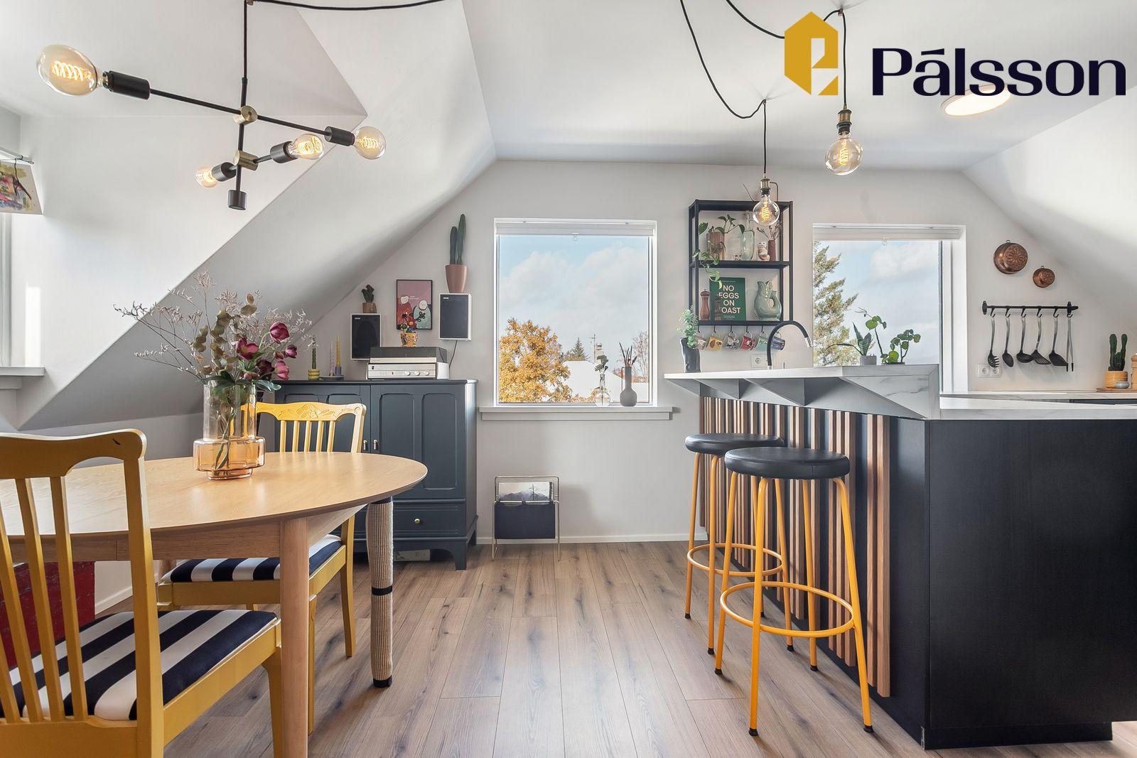 Hlýleg, björt og mikið endurnýjuð þriggja herbergja rishæð við Langholtsveg 93.Inngangur er bakvið húsið frá Langholtsveginum.