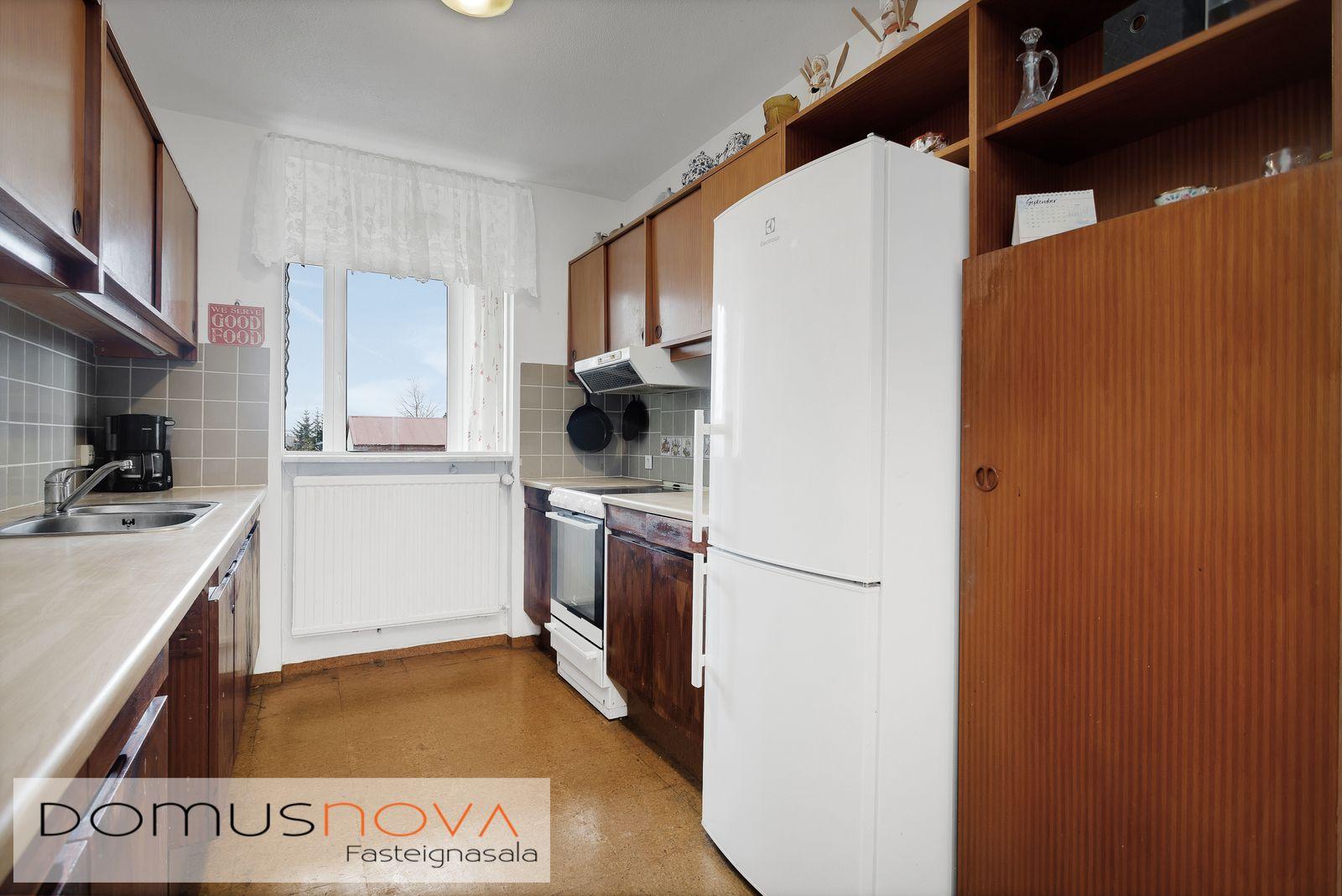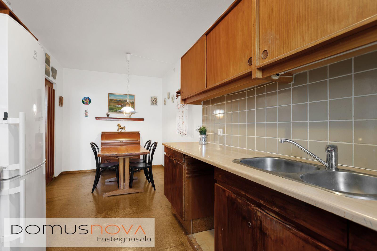 Eldhús: Með upprunalegri innréttingu og kork á gólfi.