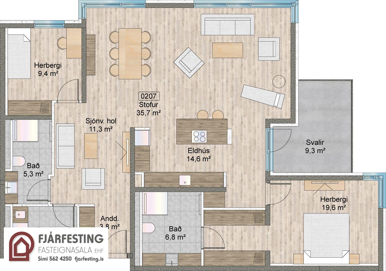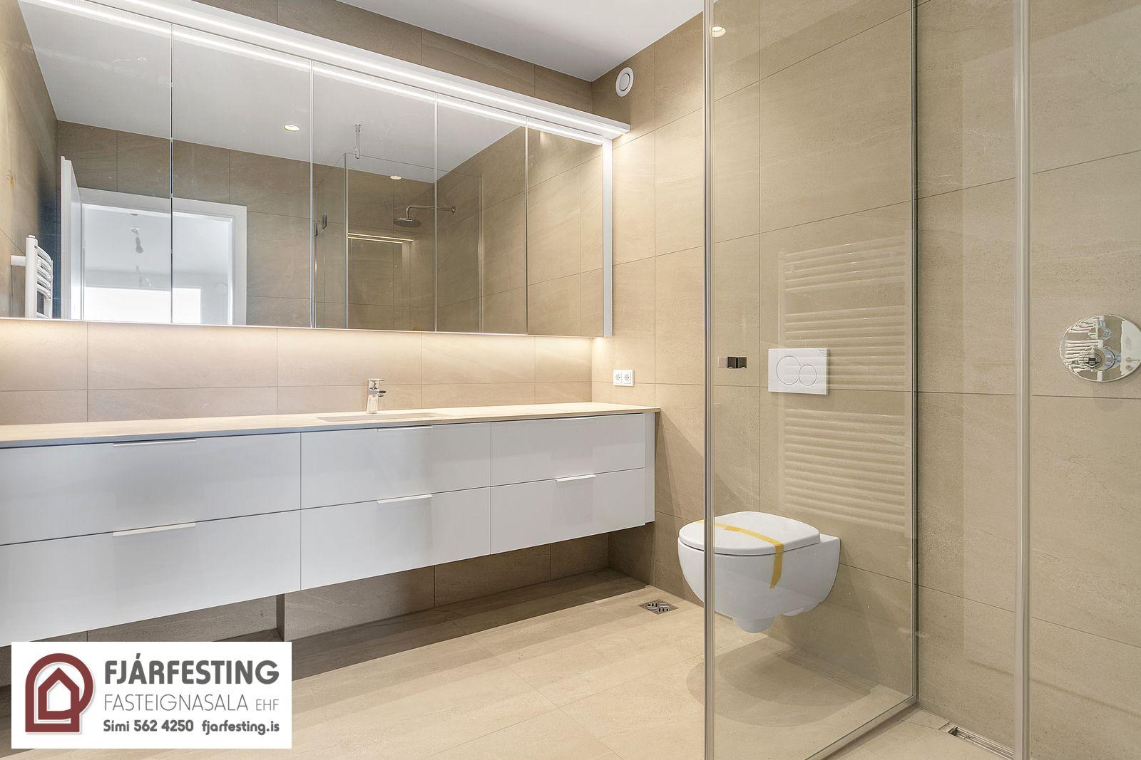 Nánari lýsing: Komið er inn í forstofu með góðum fataskáp. Eldhús með glæsilegri innréttingu og vönduðum AEG eldhústækjum. Þvottahús með flísum á gólfi og innréttingu. Björt stofa gegnið út suðursvalir Baðherbergi með flísum á gólfi og veggjum, stórri sturtu með glerþili, innbyggðum vönduðum blöndunartækjum frá Tengi, og fallegri innréttingu frá Brúnás. Stórt hjónaherbergi með fataherbergi og sérbaðherbergi með sturtu og innréttingu Herbergi með fataskáp.