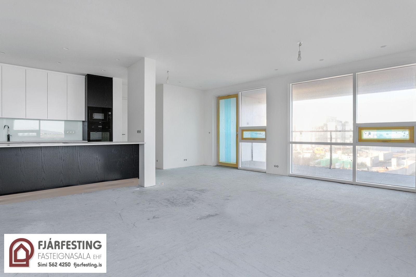 FJÁRFESTING FASTEIGNASALA, SÍMI 562-4250, ER MEÐ TIL SÖLU GLÆSILEGA 3JA HERB. ÍBÚÐ Á 2. HÆÐ Í NÝJU LYFTUHÚSI VIÐ NAUSTAVÖR 64 Í KÓPAVOGI. Glæsileg og vel skipulögð 3ja herbergja íbúð á 2. hæð, merkt 0207 í fallegu nýju álklæddu lyftuhúsi. Íbúðin sjálf er 130,3 fm. Sérgeymsla í kjallara er 9,6. fm. Samtals er eignin því skráð 139,9 fm. Sjávarútsýni. suðursvalir. Stæði í lokaðri bílageymslu fylgir. Íbúðin er öll hin glæsilegasta með fallegum innréttingum og fataskápum frá Brúnás. Blöndunartæki frá Tengi og AEG eldhústæki. Hiti er í gólfum. Naustavör 60-66 er nýtt 4ra hæða fjölbýlishús sem er í nýju bryggjuhverfi við Kársnes í Kópavogi.