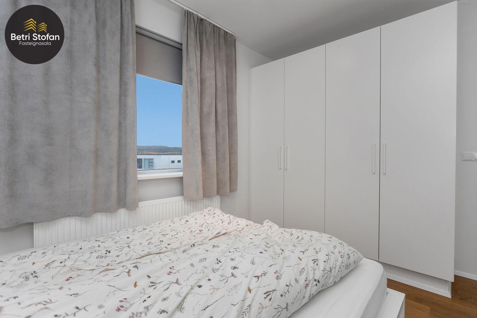 Þórhallur Biering og Betri Stofan kynna : Sérlega fallega og bjarta tveggja herbergja íbúð með suður-svölum, á fyrstu hæð. Lyftuhús á vinsælum stað í Úlfarársdalnum (byggt 2021). Mjög gott útsýni til austurs og suðurs. Komið er inn í rúmgóða forstofu með forstofuskáp. Eldhúsið er með fallegri innréttingu, skápapláss er ágætt og vinnuaðstaða fín. Gott pláss er fyrir borðstofuborð á milli eldhúss og stofu. Baðherbergið er með flísum á gólfi og hluta veggja. Ágæt innrétting, upphengt salerni og sturta. Tengi er fyrir þvottavél á baðherberginu. Stofan er góð og björt , með útgengi út á góðar suð-austur svalir. Svefnherbergið er rúmgott með stórum fastaskaáp.