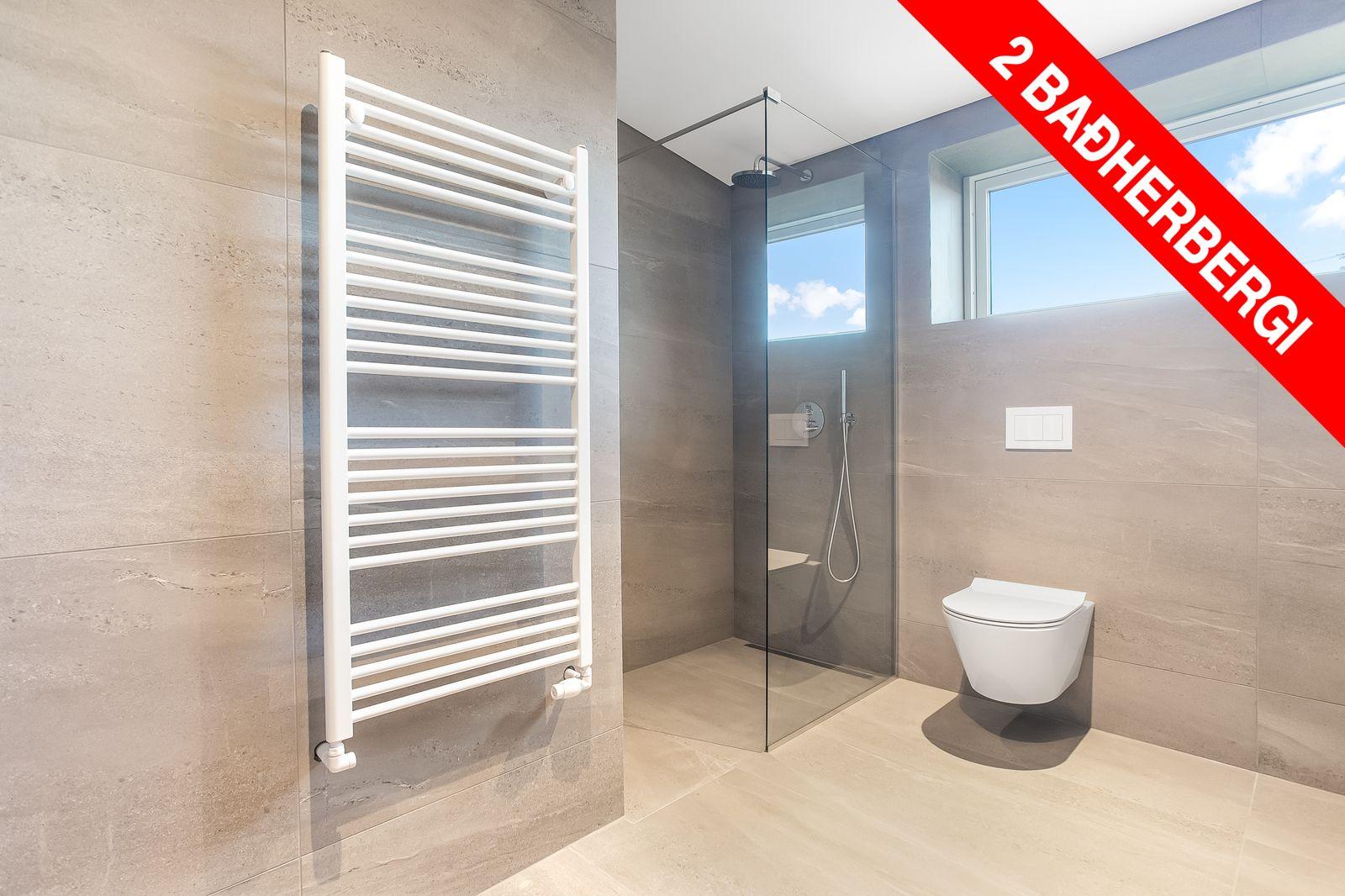 Baðherbergi númer tvö er inn af hjónaherbergi