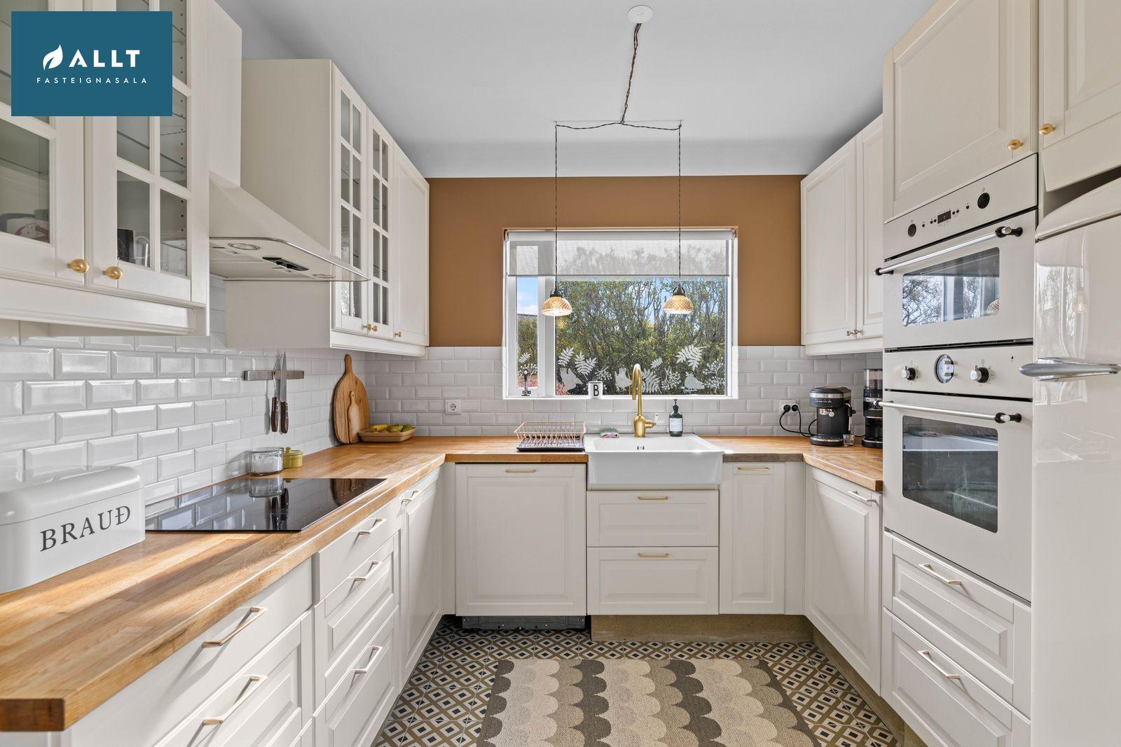ALLT fasteignasala kynnir í einkasölu eignina: Melteigur 8, 230 Reykjanesbær, birt stærð 237.0 fm þar af 44fm bílskúrUm er að ræða einstaklega fallegt einbýlishús með bílskúr miðsvæðis í Keflavík sem hefur verið mikið endurýjað á síðustu árum. Eignin skiptist í forstofu, eldhús, stofu og borðstofu, 4 svefnherbergi, baðherbergi, þvottahús, ris sem er óklárað skráð sem stórt herbergi og forrými, bílskúr sem er að hluta herbergi með baðherbergi og að hluta sem bílskúr.