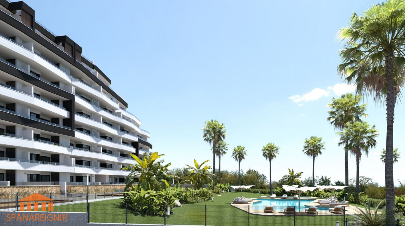 Hægt er að velja um jarðhæð með sér garði, mið hæðir með stórum svölum eða penthouse með stórum svölum og sér þaksvölum. Flottur sundlaugargarður, fallegt umhverfi. Einstakt tækifæri til að eignast góða íbúð á frábæru verði.