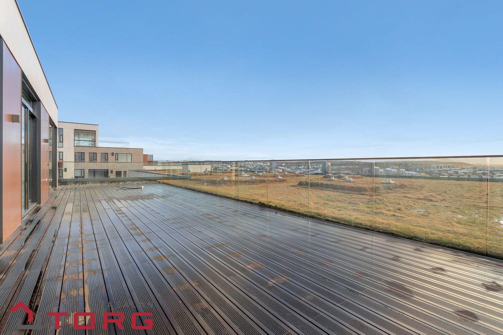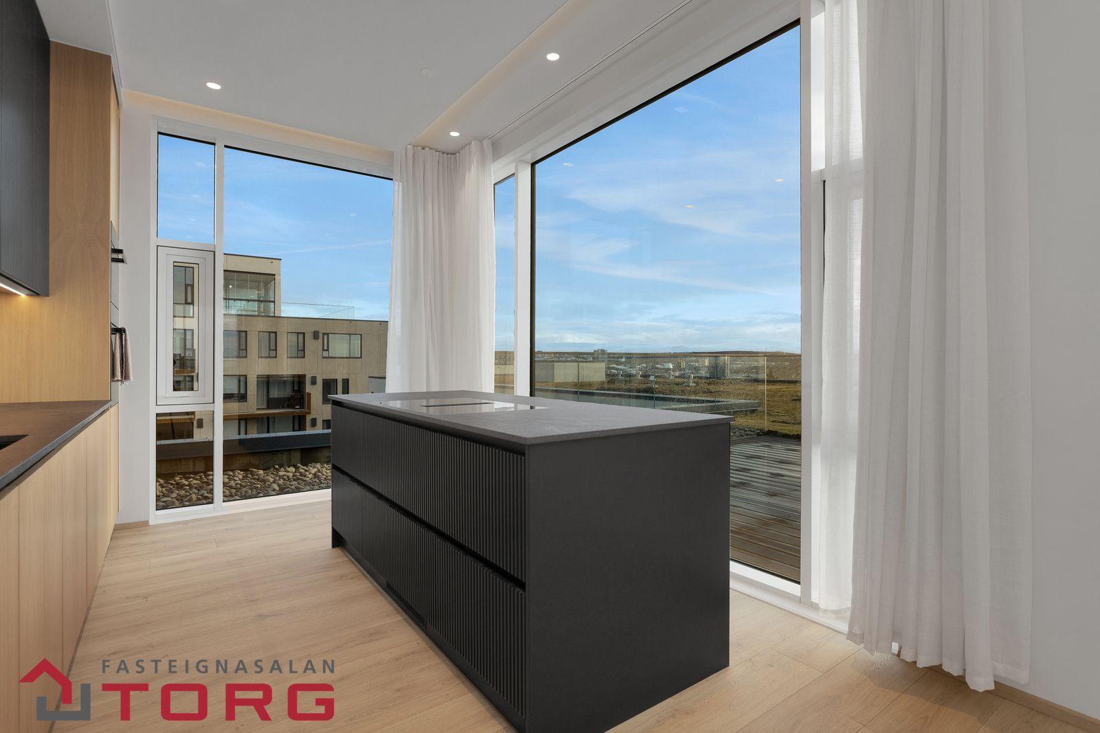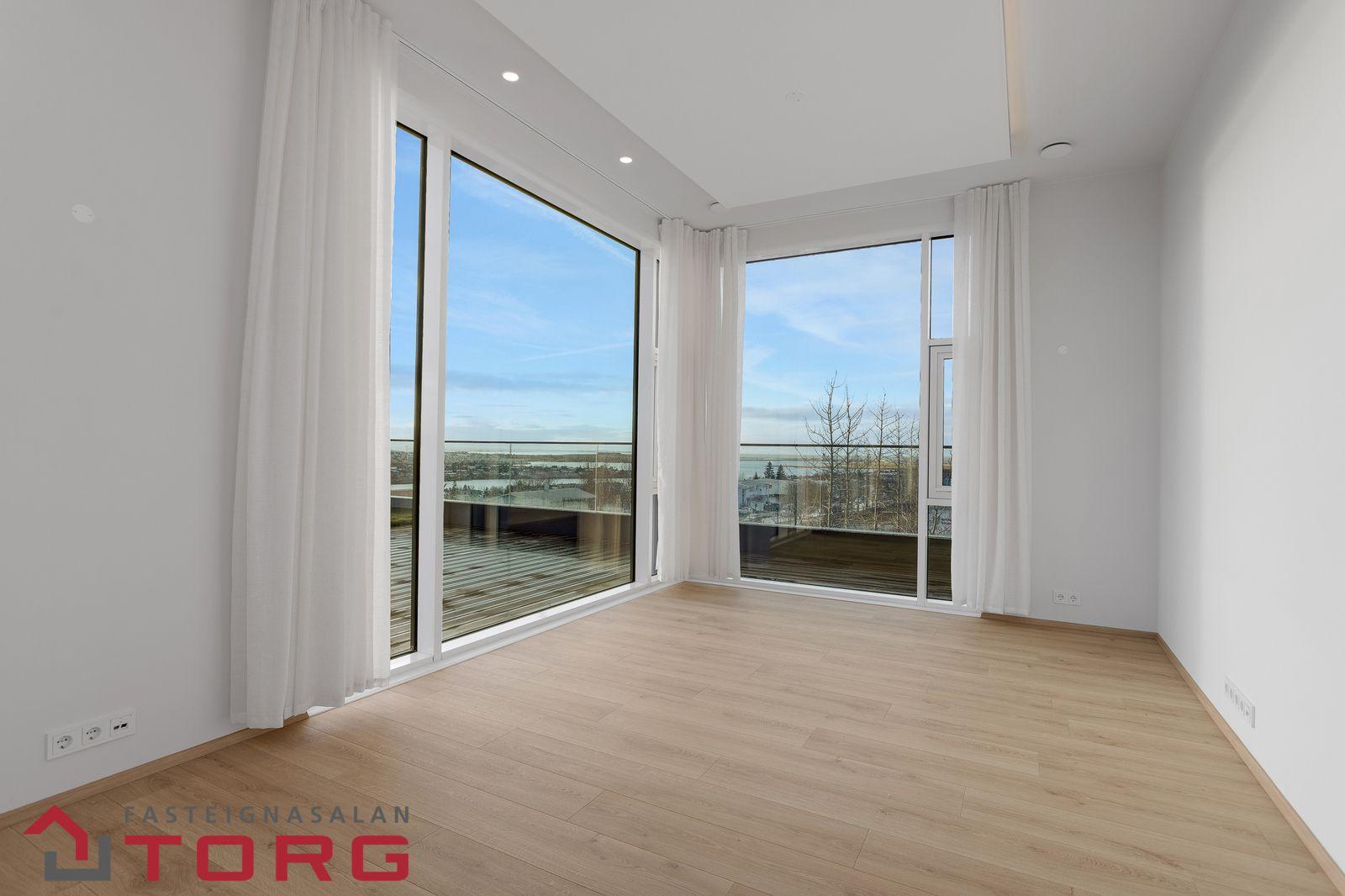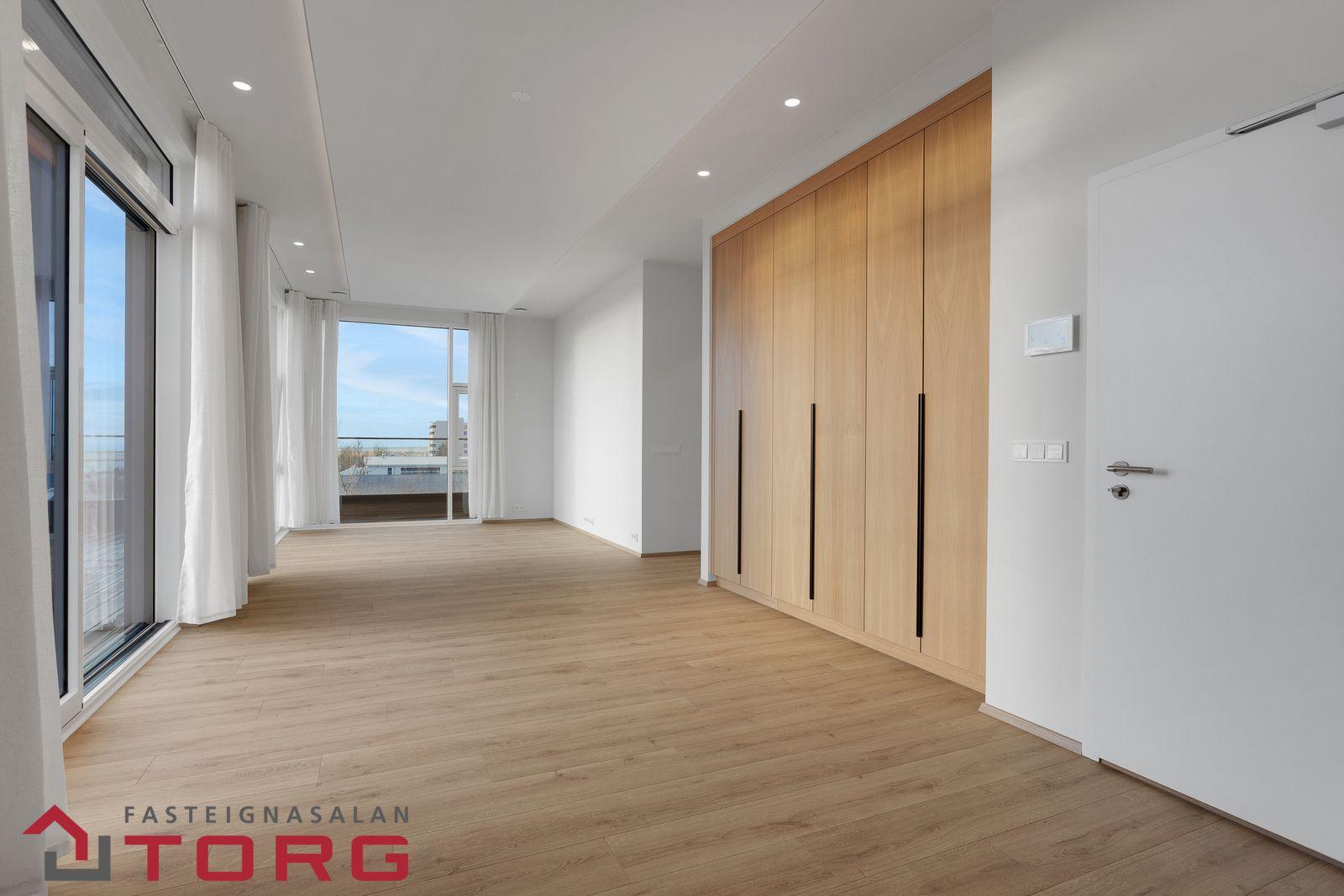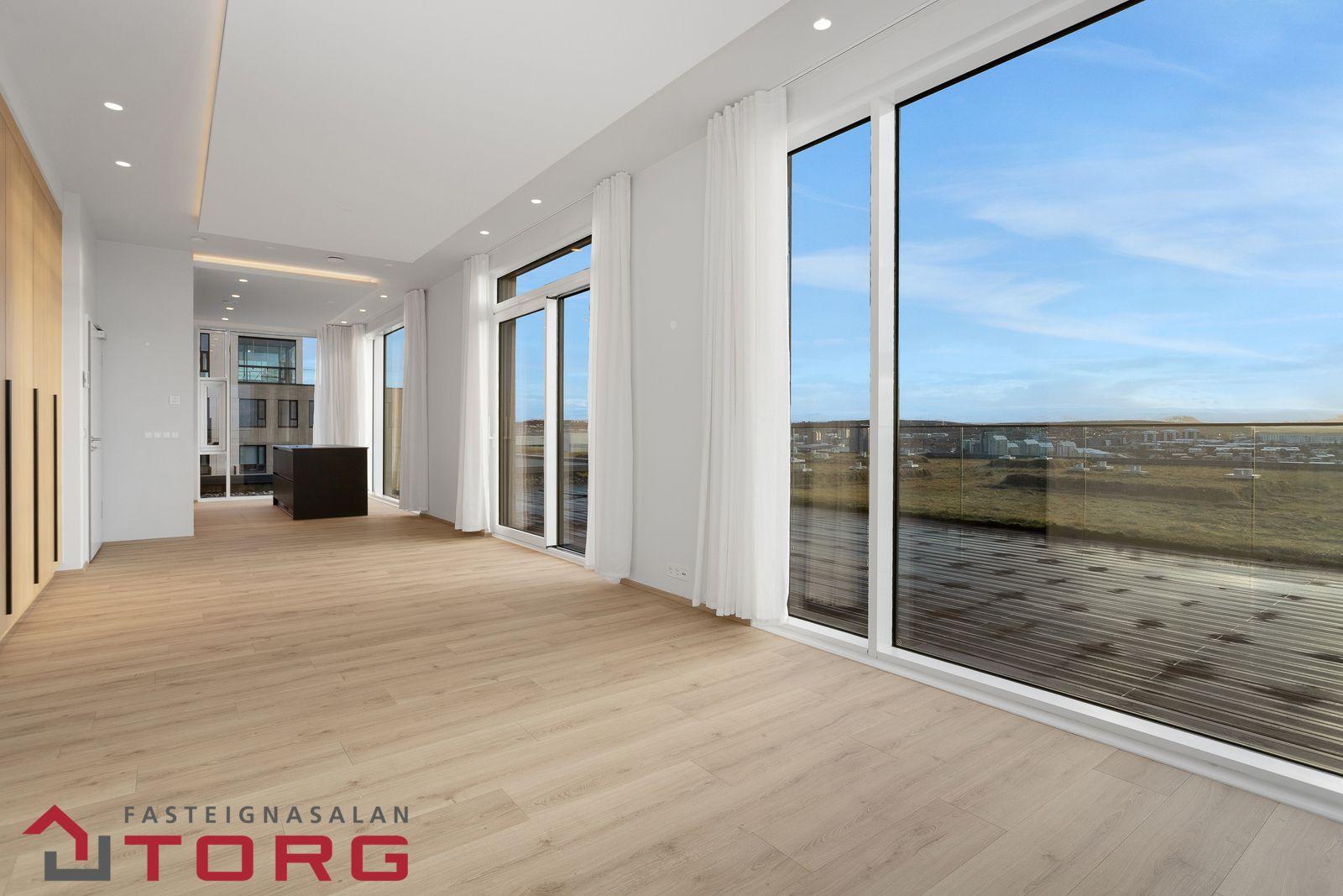 Samantekt: um er að ræða sérlega skemmtileg 3ja herbergja penthouse íbúð með miklu útsýni í allar áttir. Fágun og gæði voru höfð að leiðarljósi við hönnun íbúðarinnar, innan íbúðar er vélræn loftskipti sem tryggja aukin loftgæði.