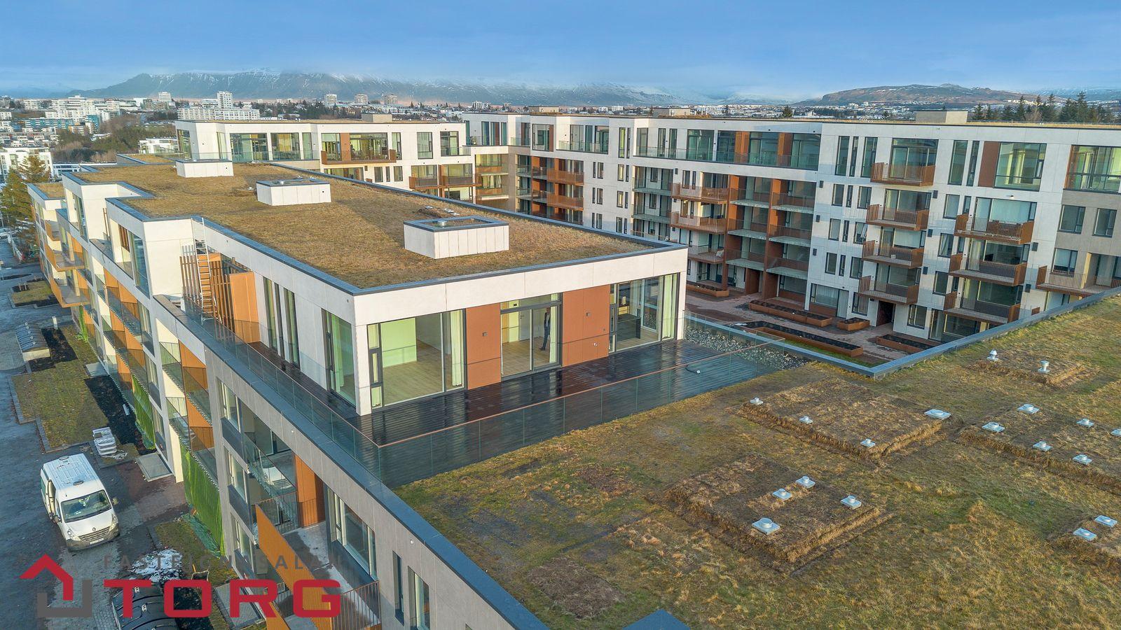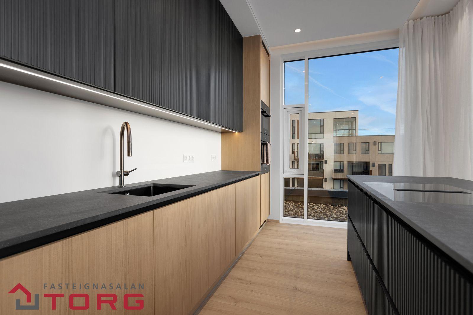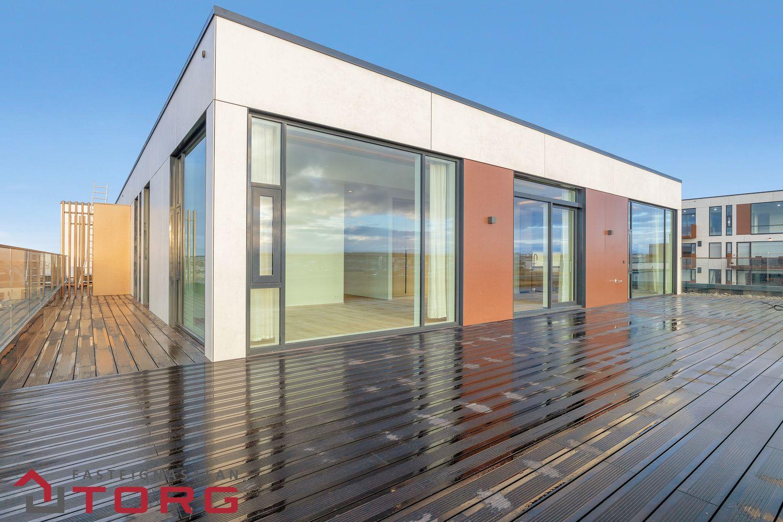 Fasteignasalan TORG kynnir: Glæsileg penthouse íbúð að Skólatröð 4, 200 Kópavogi. Mjög vönduð 105,4 fm 3 herbergja Penthouse-íbúð í nýju og glæsilegu lyftuhúsi með tvö bílastæði í bílakjallara. Sérgeymsla í sameign, skráð 11,4fm. Stórar þaksvalir c.a. 95fm eru meðfram aðalrými og niður með svefnherbergjum með útsýni í allar áttir. Bókið einkaskoðun og fáið allar nánari upplýsingar hjá Sigurði Gunnlaugssyni, fasteignasali í GSM: 898-6106 eða sigurdur@fstorg.isSækja söluyfirlit HÉRNánari lýsing. íbúðin er afhent með gólfefnum, með vönduðum innréttingum frá Selós, steinn á borðum. Flísalögð baðherbergi og þvottahús með I Cocci Cenere 60x120cm frá Ebson bæði gólf og veggir að hluta. Gólfhiti er í íbúðinni og jafnvægisstillt loftræsikerfi með varmaendurvinnslu. Hefðbundið útsogskerfi er í geymslum. Eldhúsinnréttingar eru sérsmíðaðar frá Selós. Skápar eru úr vönduðu stitsterku melamin efni. Vönduð heimilistæki eru í íbúðinni frá AEG. Kæli-/frystiskápur og uppþvottavél eru innbyggð í innréttinguna og spanhelluborð. Dekton – Rem steinborðplötur eru í eldhúsi og Silestone – Nolita steinborðplötur á baði. Gólfhiti er í gólfi baðherbergis auk handklæðaofns. Stórar þaksvalir eru meðfram aðlrými með útsýni í allar áttir, yfir Kópavog, út á sjó, Bessastaði, Bláfjöll og fl. Tvö Bílastæði í bílakjallara fylgja ibúðinni.