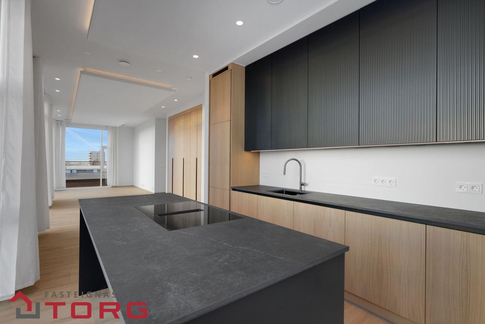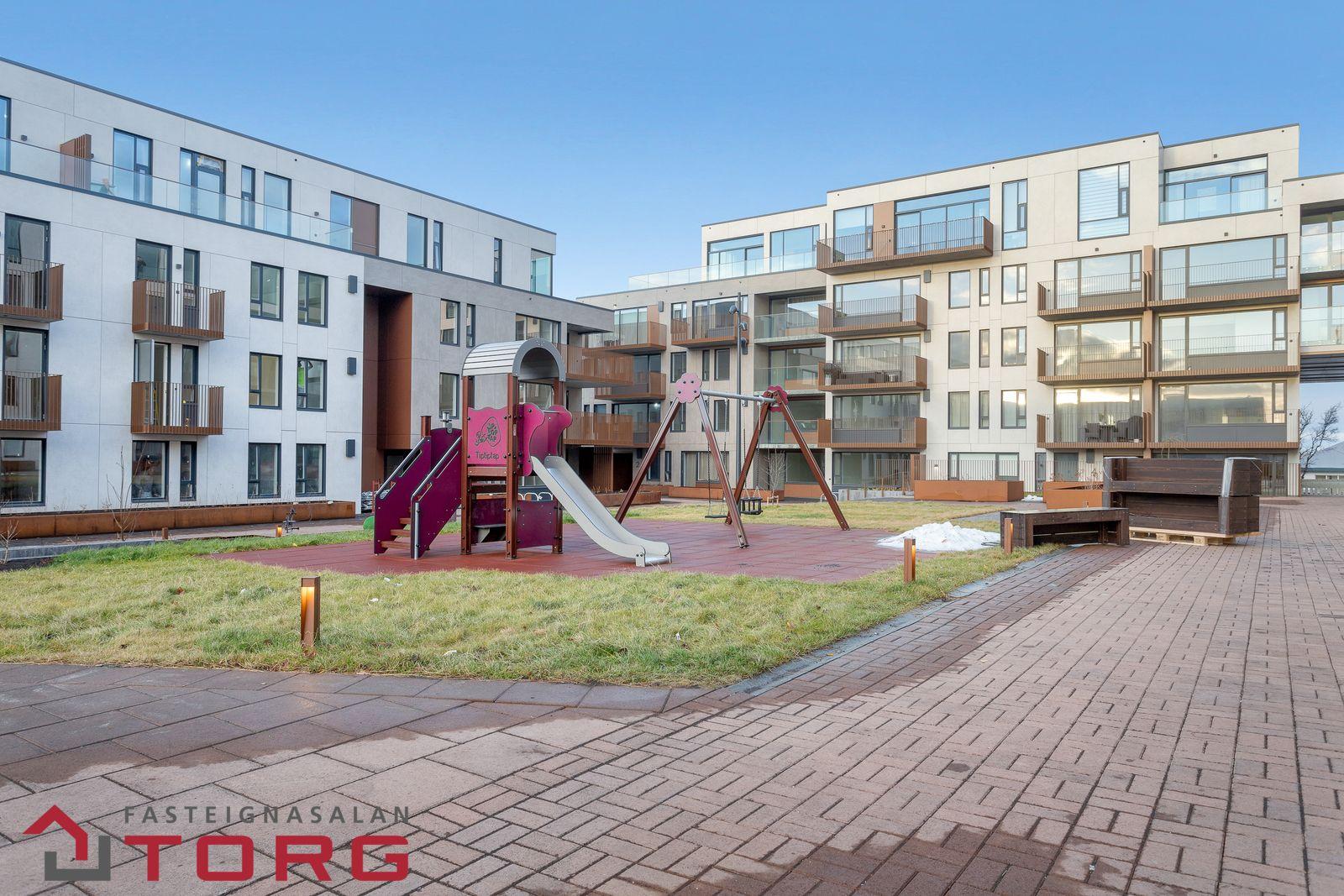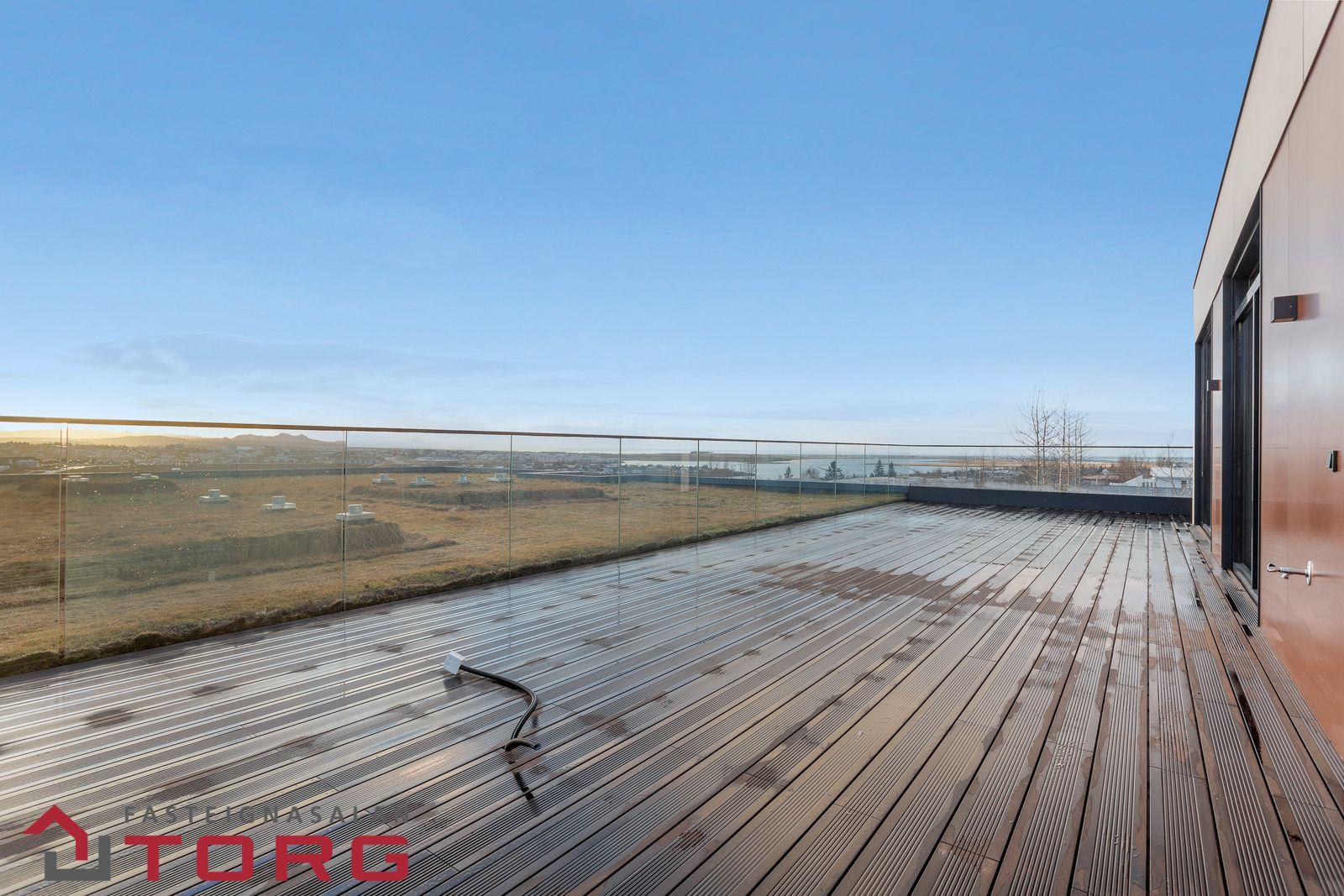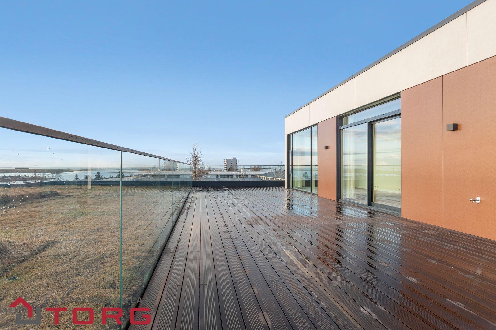 Fasteignasalan TORG kynnir: Glæsileg penthouse íbúð að Skólatröð 4, 200 Kópavogi. Mjög vönduð 105,4 fm 3 herbergja Penthouse-íbúð í nýju og glæsilegu lyftuhúsi með tvö bílastæði í bílakjallara. Sérgeymsla í sameign, skráð 11,4fm. Stórar þaksvalir c.a. 95fm eru meðfram aðalrými og niður með svefnherbergjum með útsýni í allar áttir. Bókið einkaskoðun og fáið allar nánari upplýsingar hjá Sigurði Gunnlaugssyni, fasteignasali í GSM: 898-6106 eða sigurdur@fstorg.isSækja söluyfirlit HÉRNánari lýsing. íbúðin er afhent með gólfefnum, með vönduðum innréttingum frá Selós, steinn á borðum. Flísalögð baðherbergi og þvottahús með I Cocci Cenere 60x120cm frá Ebson bæði gólf og veggir að hluta. Gólfhiti er í íbúðinni og jafnvægisstillt loftræsikerfi með varmaendurvinnslu. Hefðbundið útsogskerfi er í geymslum. Eldhúsinnréttingar eru sérsmíðaðar frá Selós. Skápar eru úr vönduðu stitsterku melamin efni. Vönduð heimilistæki eru í íbúðinni frá AEG. Kæli-/frystiskápur og uppþvottavél eru innbyggð í innréttinguna og spanhelluborð. Dekton – Rem steinborðplötur eru í eldhúsi og Silestone – Nolita steinborðplötur á baði. Gólfhiti er í gólfi baðherbergis auk handklæðaofns. Stórar þaksvalir eru meðfram aðlrými með útsýni í allar áttir, yfir Kópavog, út á sjó, Bessastaði, Bláfjöll og fl. Tvö Bílastæði í bílakjallara fylgja ibúðinni.
