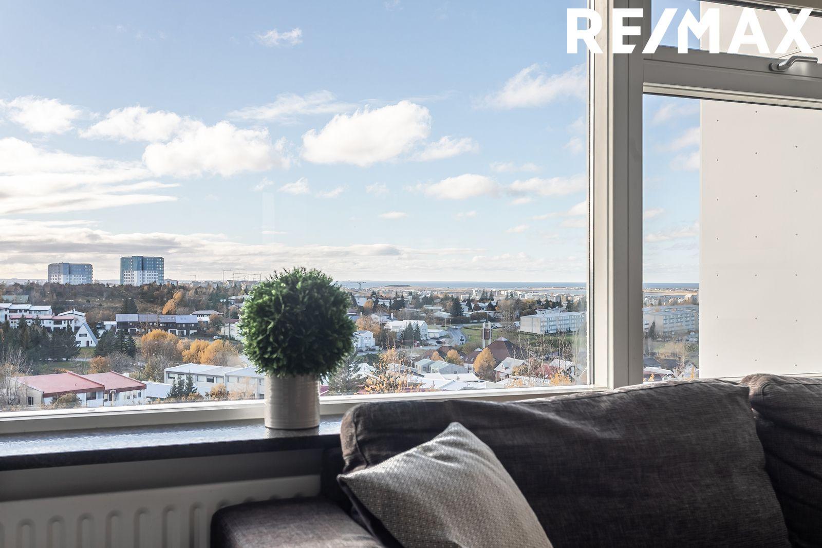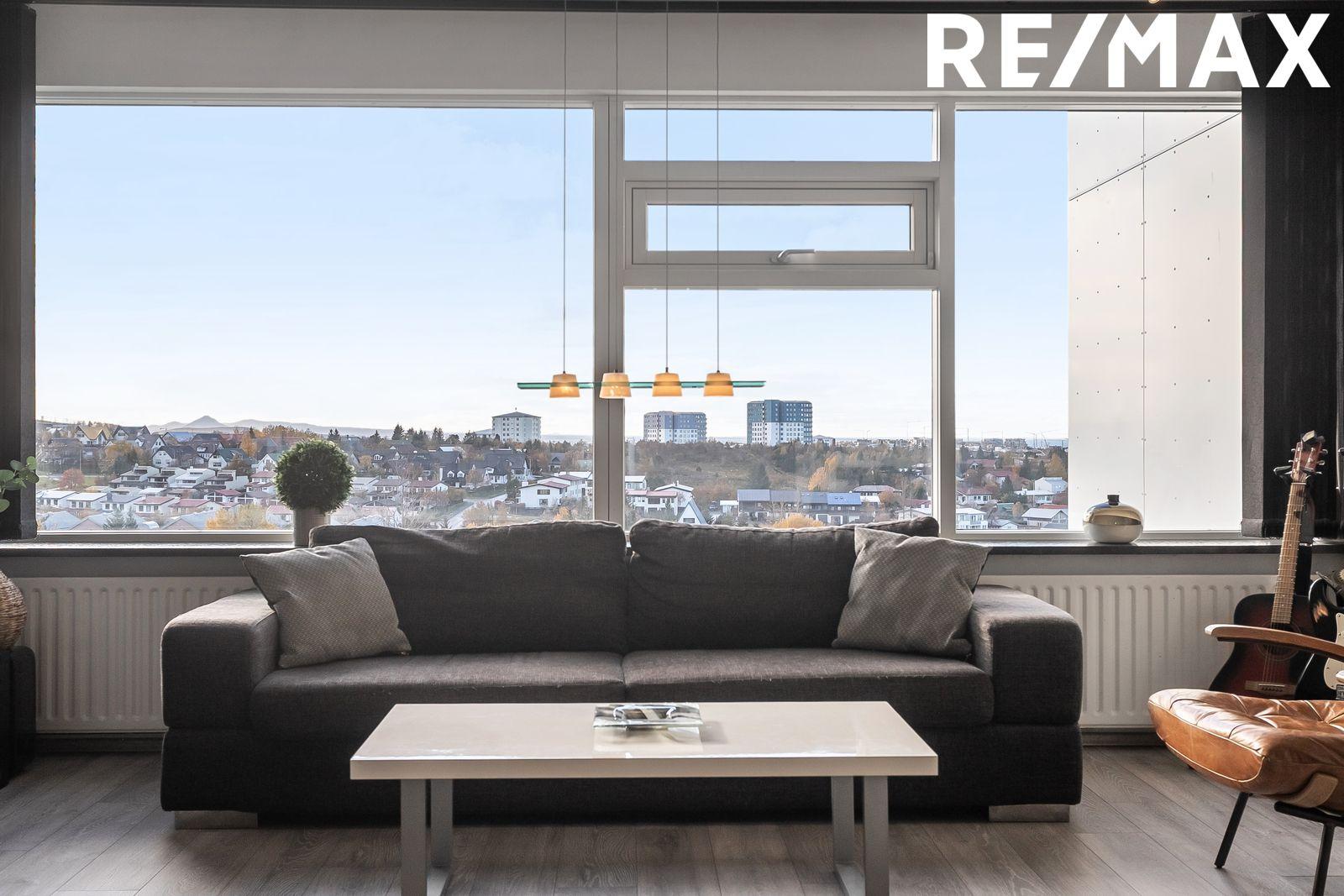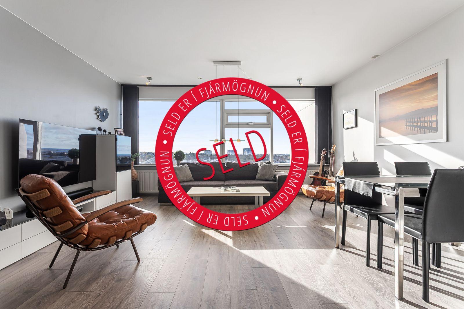 Einstaklega björt og rúmgóð 3ja herbergja íbúð á fjórðu og efstu hæð með miklu útsýni. Rúmgóðar suðvestursvalir og stæði í bílastæðahúsi.