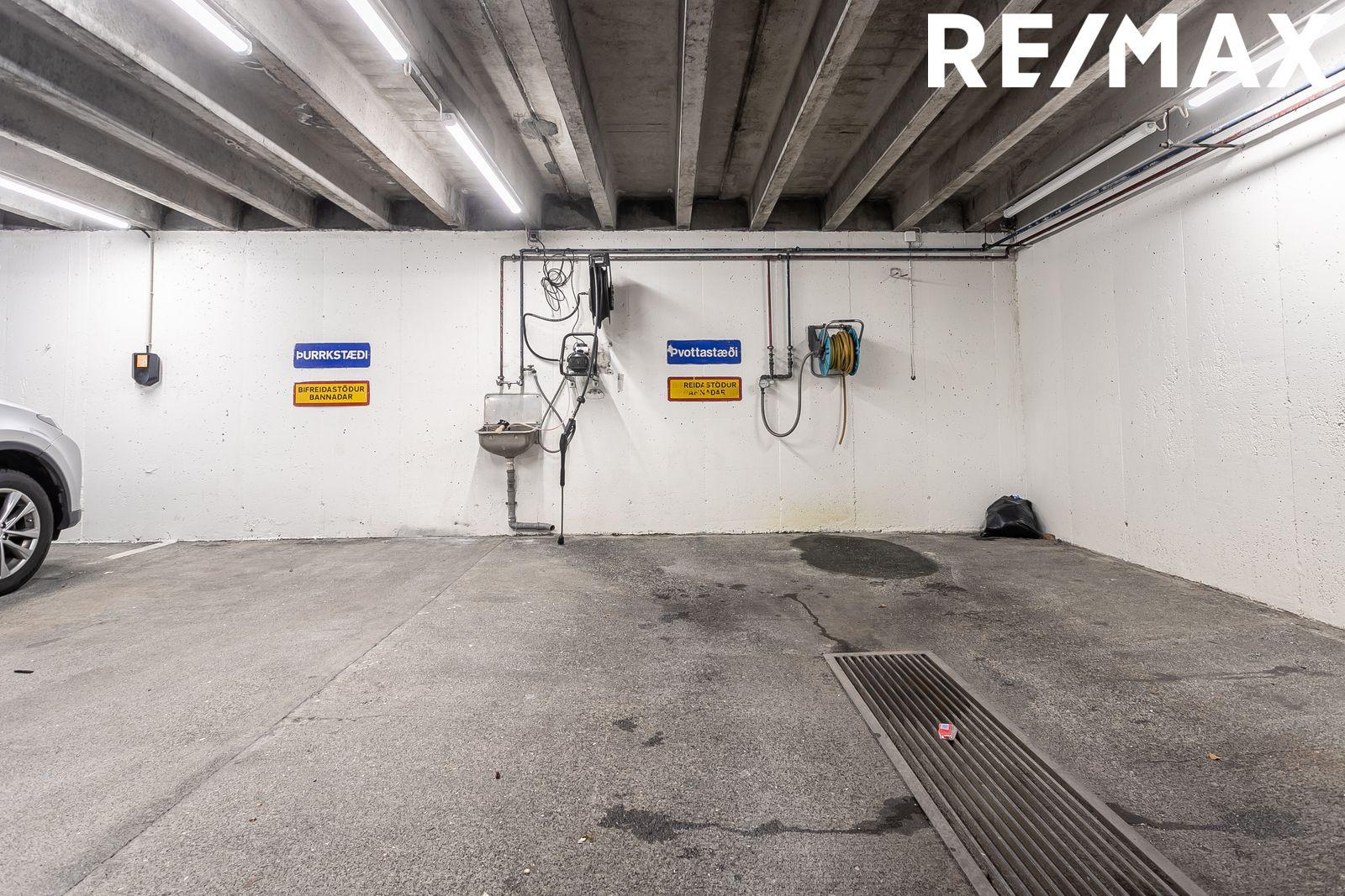 Einkabílastæði í bílastæðahúsi: Merkt einkastæði fylgir íbúðinni skráð. Möguleiki er að yfirtaka leigusamning við ON á rafhleðslustöð við stæðið. Í bílastæðahúsinu eru tvö almenn skammtíma bílastæði, ætluð sem þvottaaðstaða fyrir bíla og og hitt sem þurrkstæði.