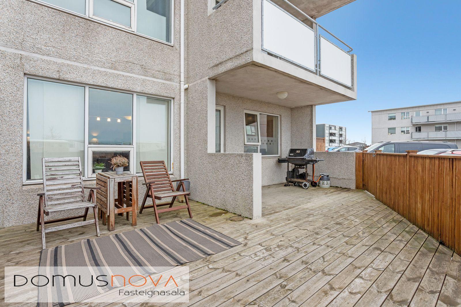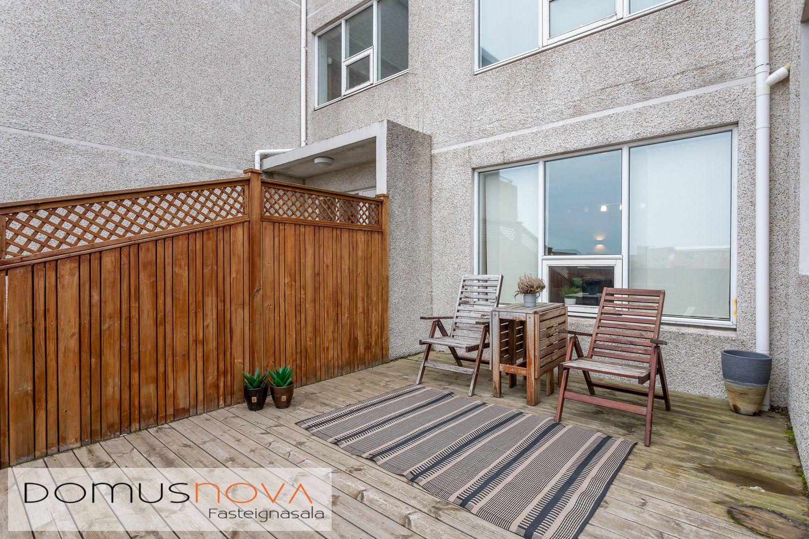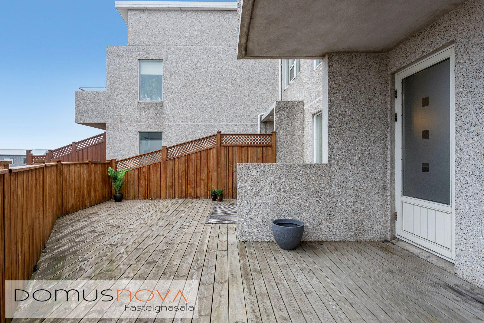 Timburverönd: Útgengt á 22,4 fm timburverönd til suðvesturs með góðum skjólvegg. Hægt er að ganga að bílastæði frá verönd.