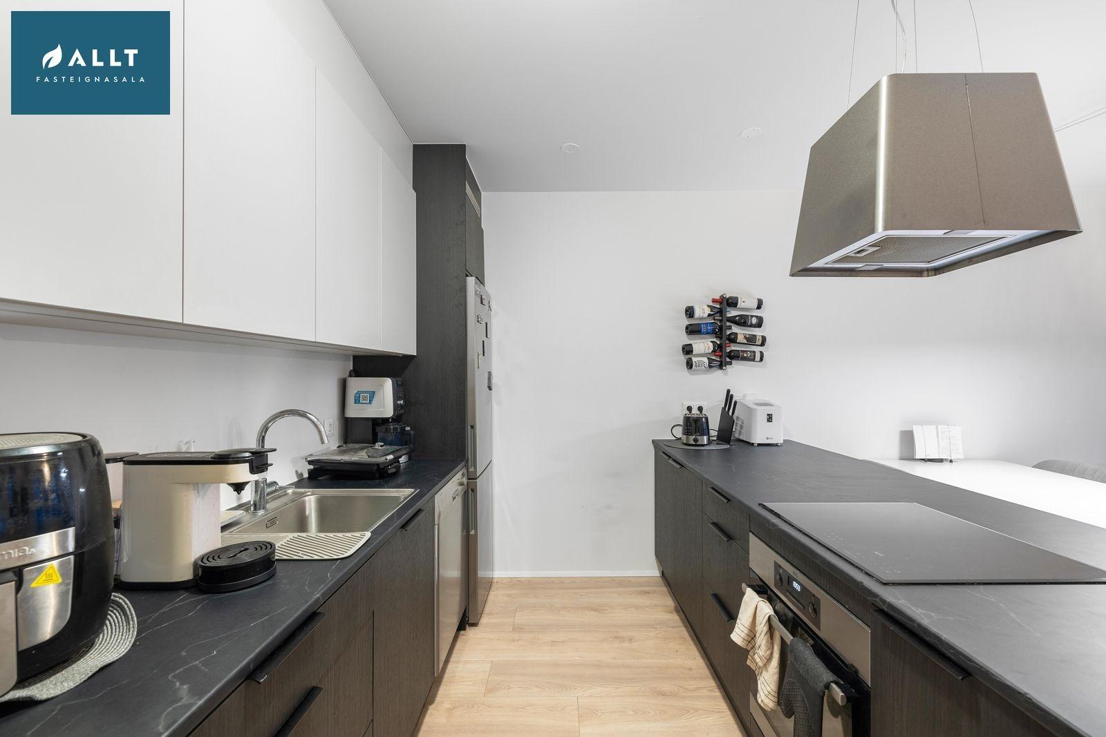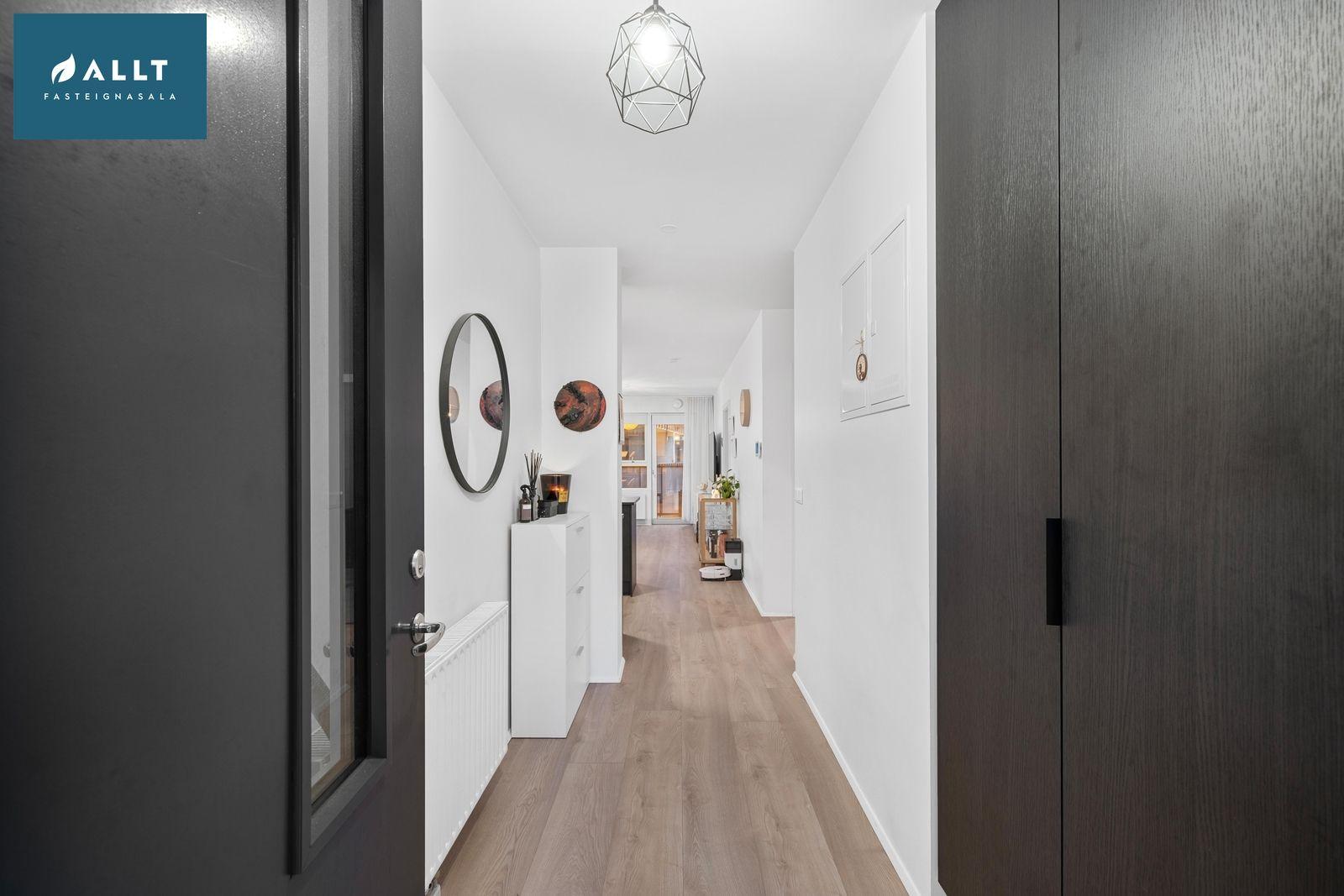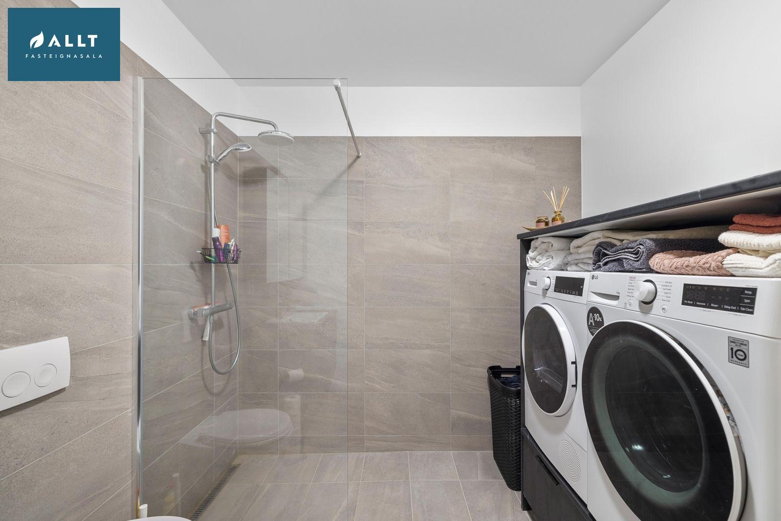 Baðherbergi: Rúmgott baðherbergi, flísalagt, innangeng sturta, upphengt salerni, góð innrétting með handlaug. Handklæðaofn. Innrétting fyrir þvottavél og þurrkara.