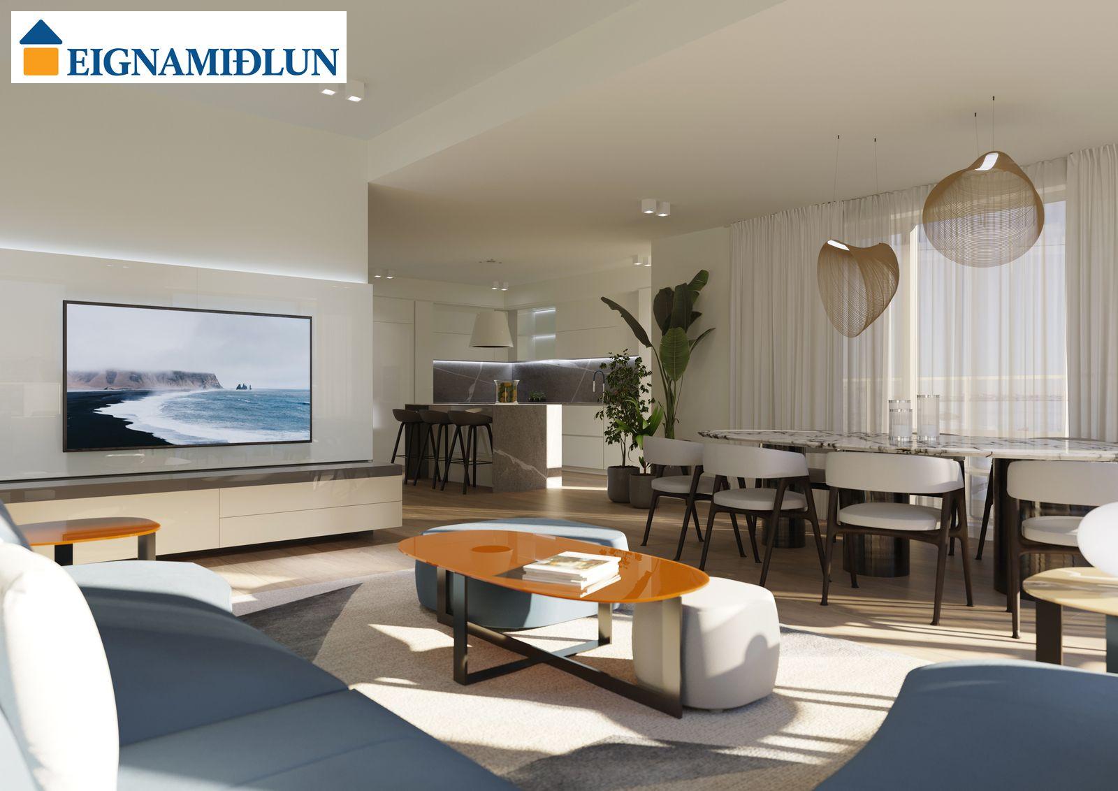 Mikil vinna hefur verið lögð í flæði íbúða og val á innréttingum sem spegla listrænan metnað í verkefninu sem heild.