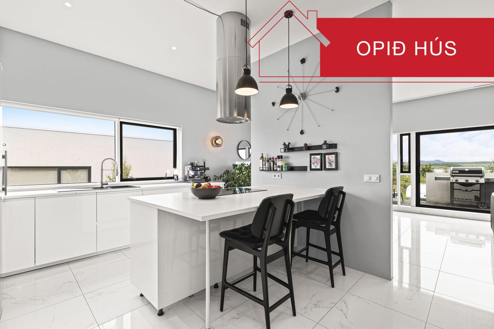 Bílskúr:  3 fasa rafmagn er í bílskúr, heitt og kalt vatn, epoxy á gólfi, rafmagnshurð, rafmagnsstýrikerfi fyrir gólfhita, rafhleðslustöð fyrir bíl fylgir með í kaupum á eign.