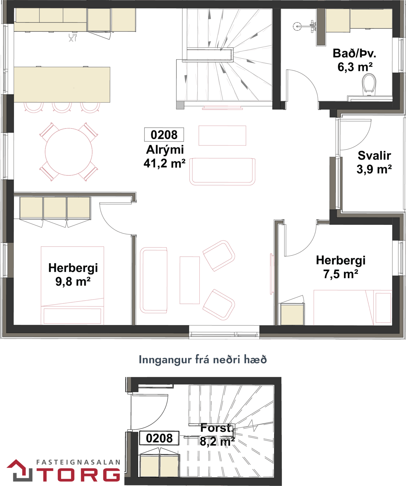 Ath. innimyndir eru tölvuteiknaðar og eru til glöggvunar en sýna ekki endanlegan frágang eignarinnar, nánar um skil sjá skilalýsingu seljanda.