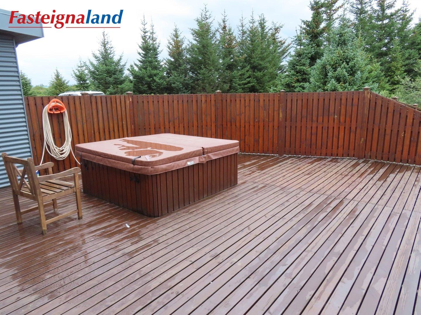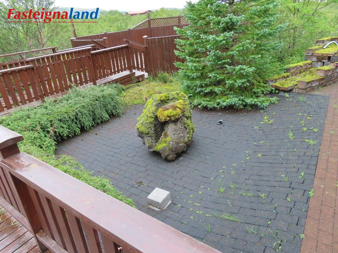 Stórir og miklir sólpallar með girðingu og skjólgirðingu. Á lóðinni er tjörn og lítið dúkkuhús ca. 3 fm (bjálki).