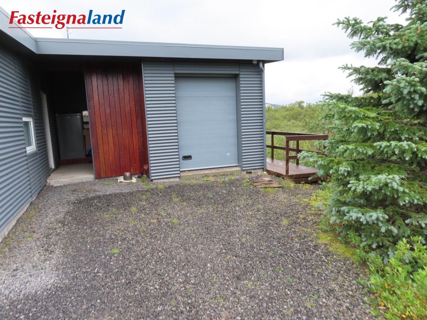 Geymsla: Skráð 20,7 fm með flisum á gólfi og innkeyrsluhurð með sjálfvirkum rafmagnshurðaropnara. Tvennar göngudyr.