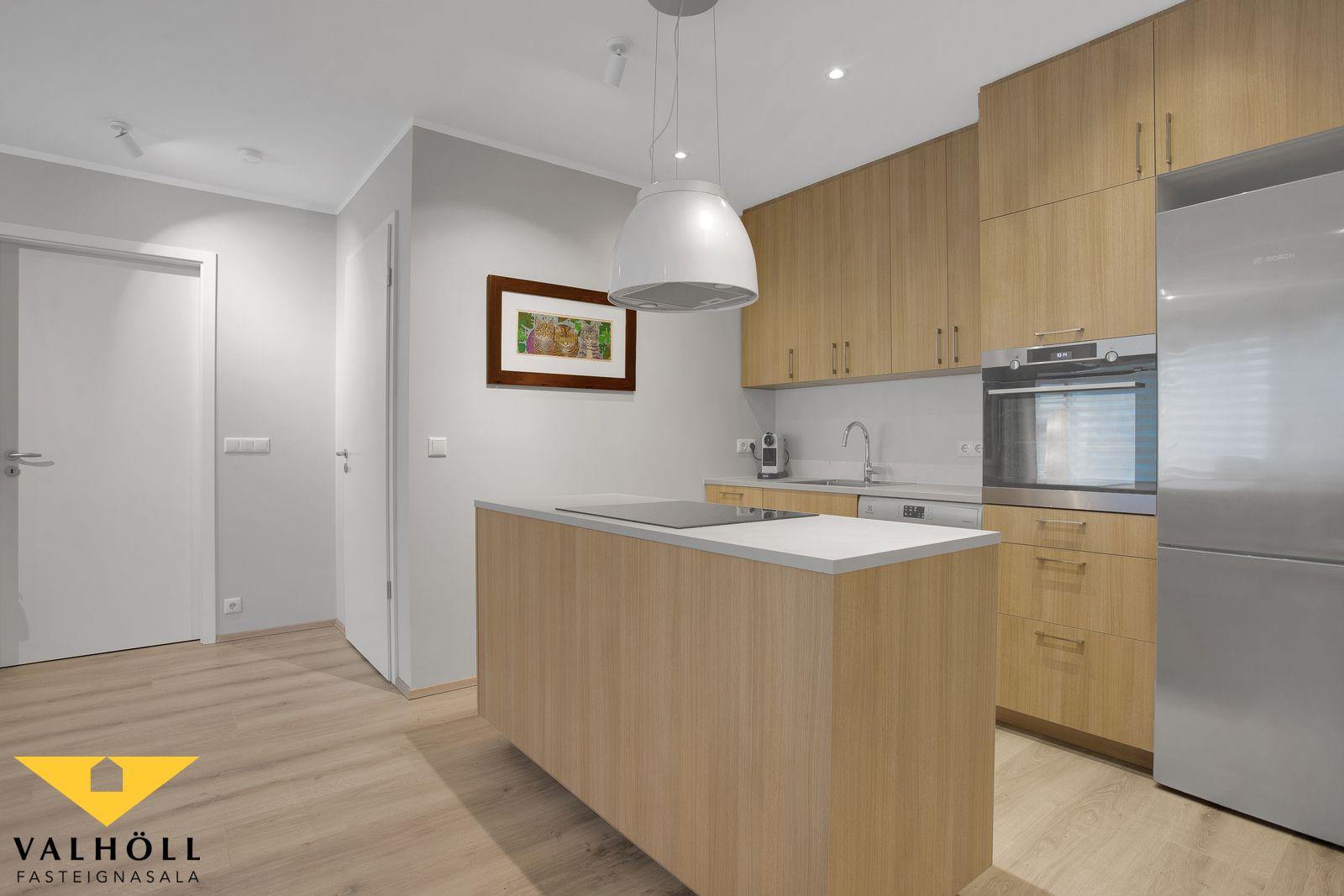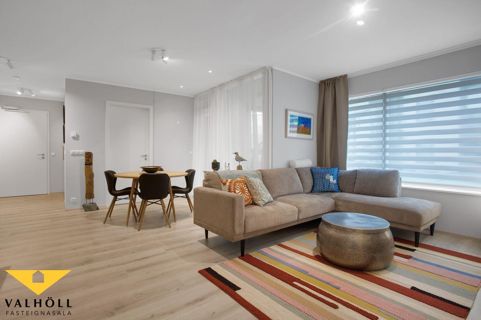Íbúðin skiptist í forstofu, eldhús, stofu, tvö svefnherbergi, baðherbergi með þvottahúsi inn af, geymslu í kjallara auk sérmerkts bílastæðis í bílakjallara.