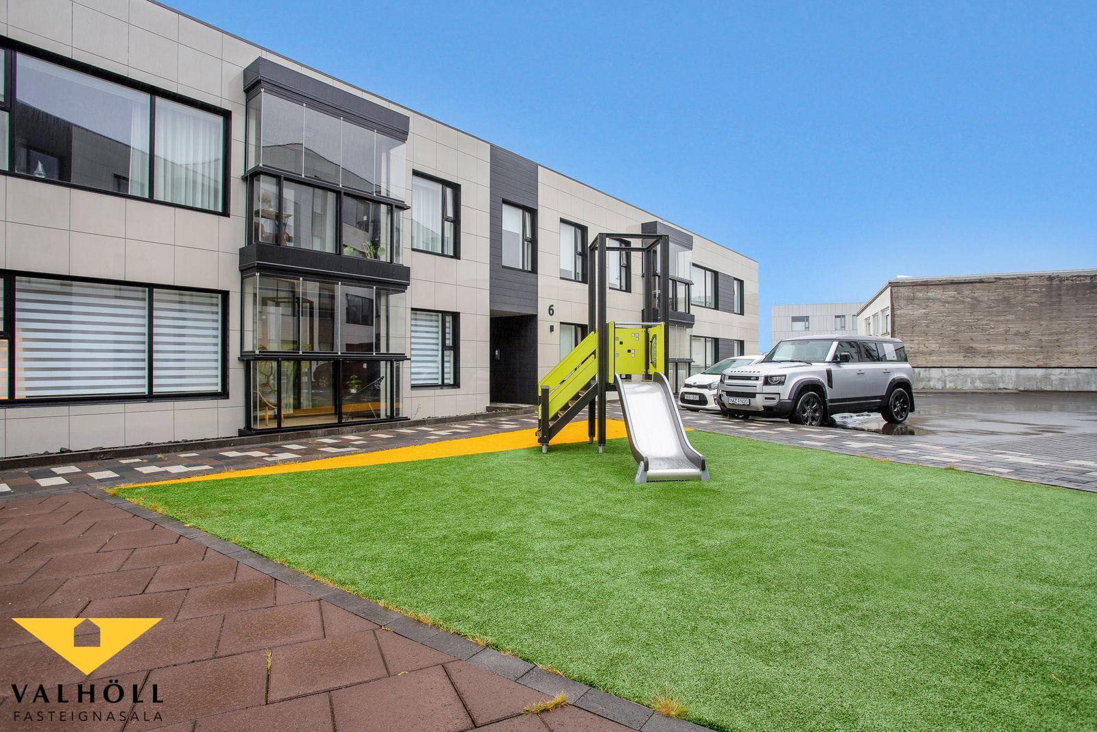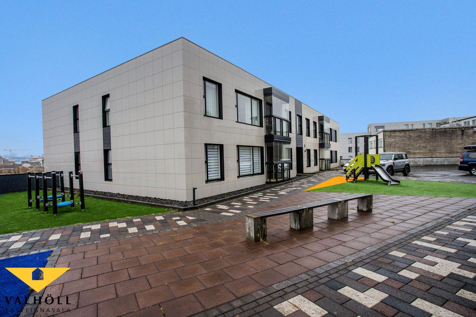 Um er að ræða íbúð sem skráð er 88,3 m2 að stærð skv. fasteignaskrá HMS og þar af er 6,7 m2 geymsla innaf sameign. Húsið er byggt árið 2021.