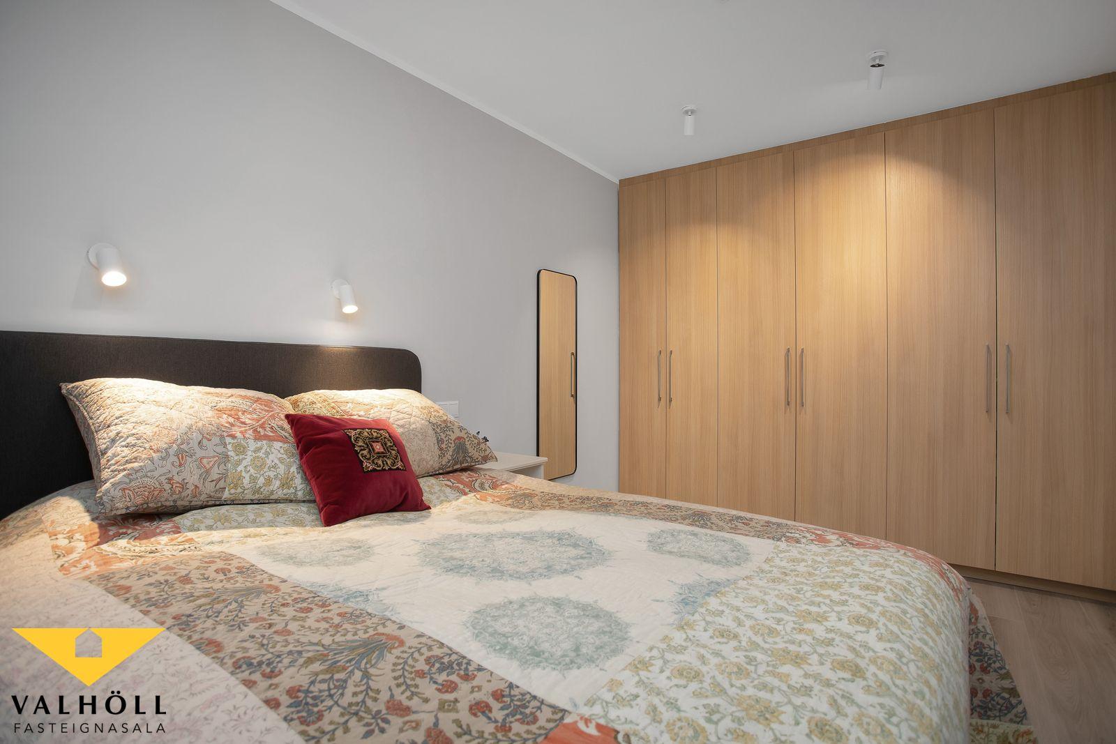Svefnherbergi II: með fataskáp og harðparketi á gólfi.