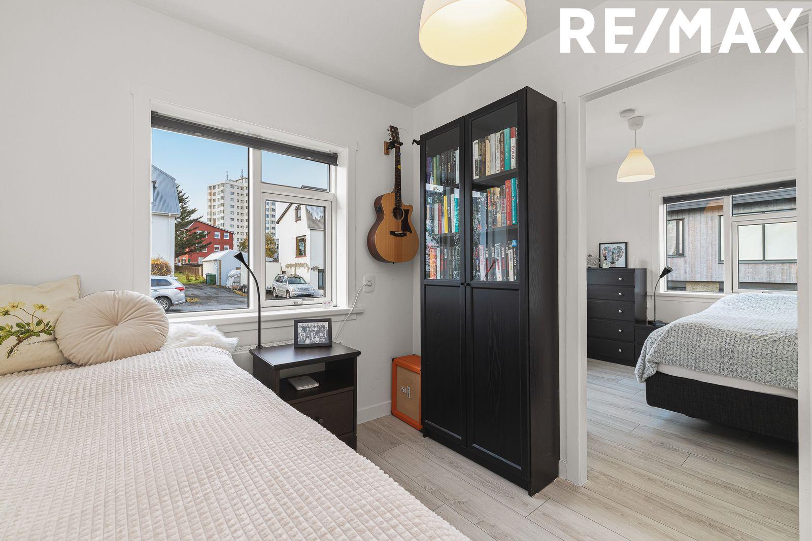 Herbergi II er með nýjum tvöföldum fataskáp með spegli. Inni í herberginu er lítil geymsla. Milli þessa herbergis og næsta er hurð og hægt að hafa opið á milli þeirra. Parket á gólfi.