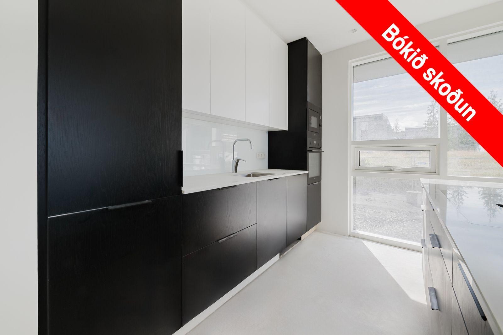 Allar innréttingar eru sérsmíðaðar frá Brúnási, eldhústæki eru af vandaðri gerð frá Bræðrunum Ormsson og blöndunartæki eru af vandaðri gerð frá Tengi.